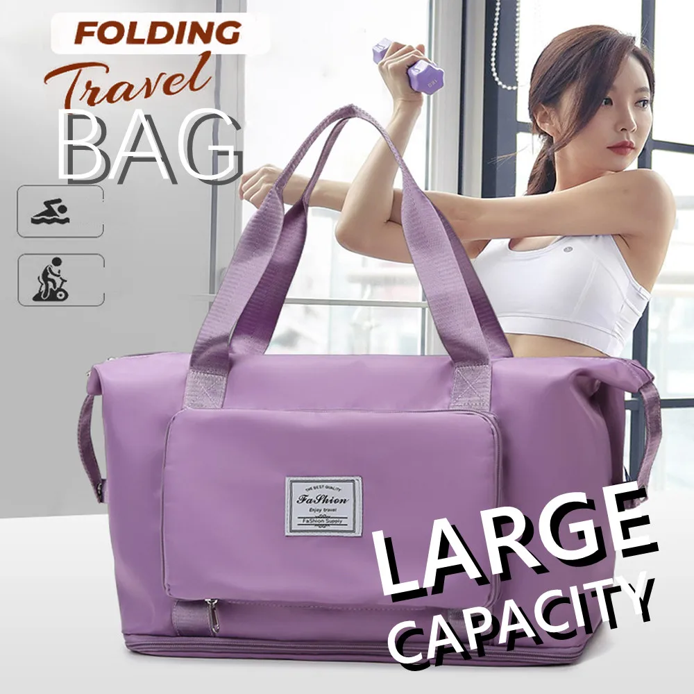 Вместительная складная дорожная сумка, Лучший компаньон в путешествиях!Вы можете носить с собойВручную или на плече, Или положить егоНа чемоданеС помощью дополнительного дизайна открывания!