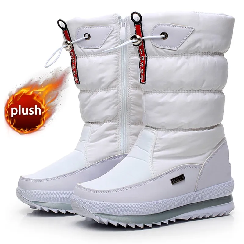 Женские зимние ботинки, Роскошные зимние ботинки на платформе, плюшевые водонепроницаемые Нескользящие ботинки, модная зимняя обувь, теплые меховые ботинки