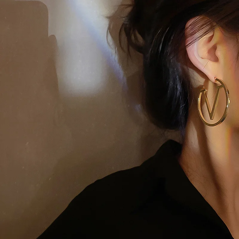 Женские серьги-кольца с V-образным вырезом, из нержавеющей стали