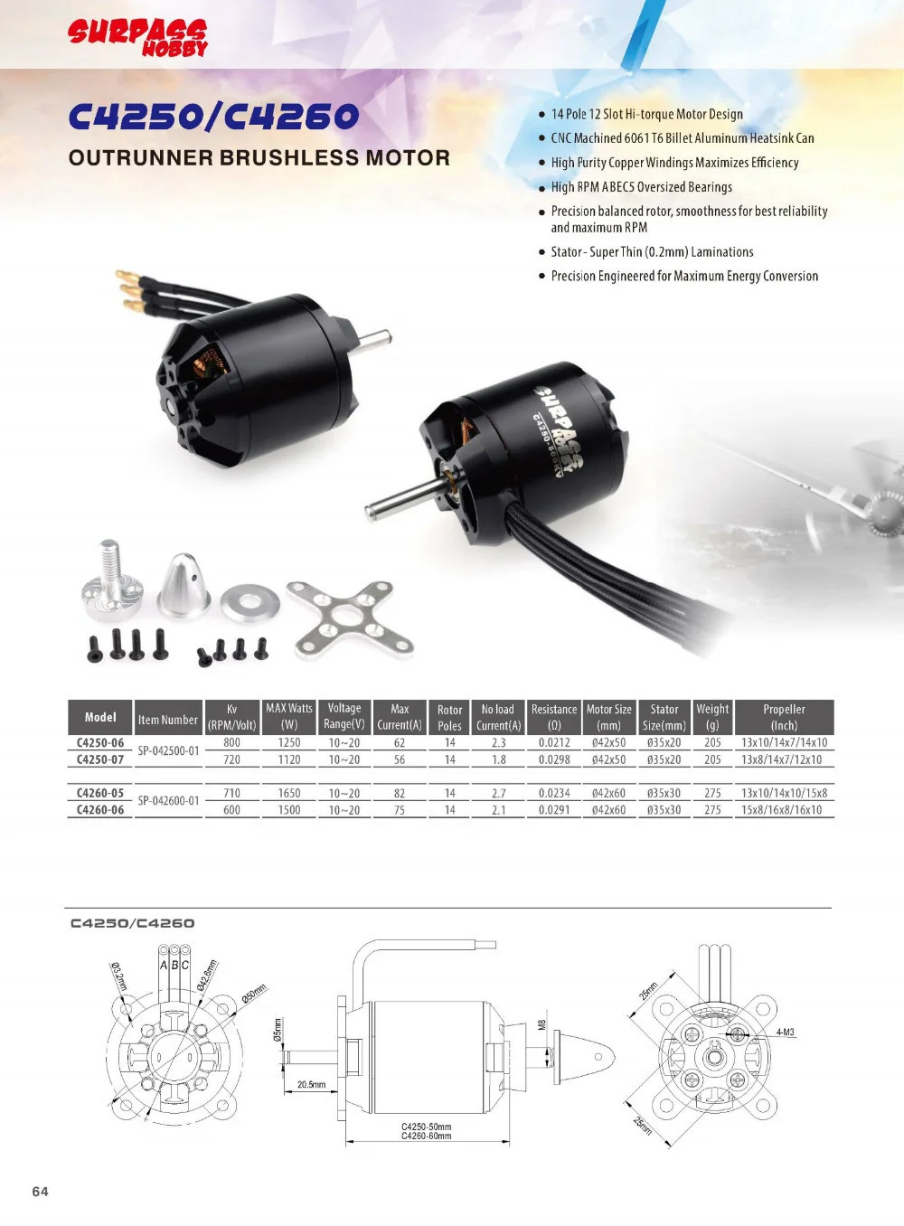 Surpass Hobby бесщеточный мотор C4250 C4260 C5045 C5055 C5065 C6354...
