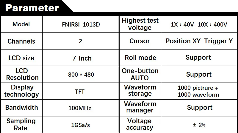 FNIRSI-1013D цифровой планшетный осциллограф двухканальный 100M полоса пропускания 1GS частота дискретизации планшетный цифровой осциллограф