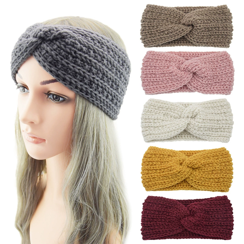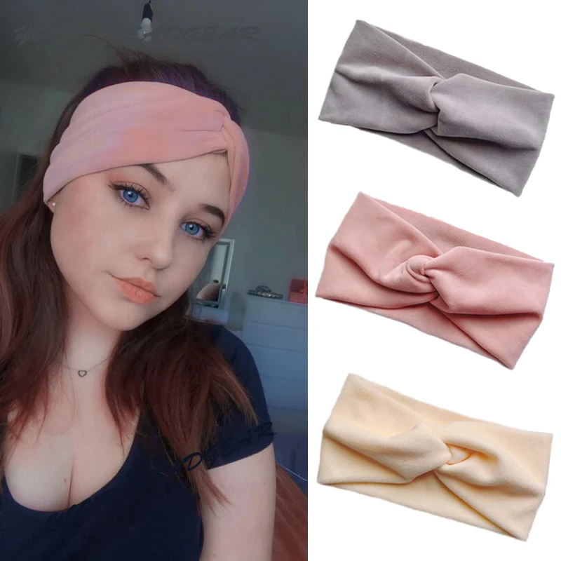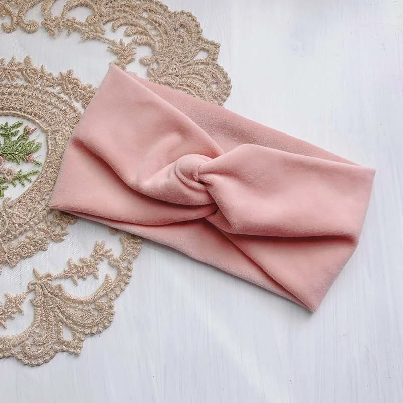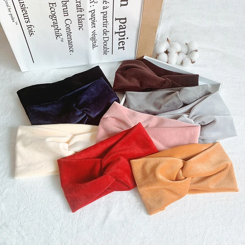 Модная бархатная повязка на голову для женщин, зимние вязаные шерстяные перекрестные повязки на голову, мягкие однотонные блестящие повязки для волос, головной убор