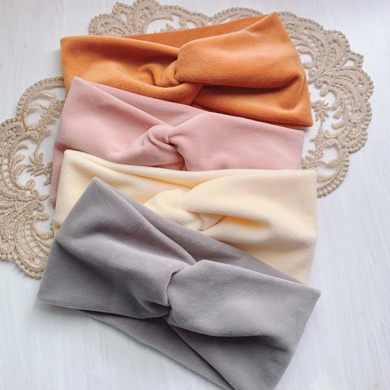 Теплая бархатная повязка на голову для женщин, зимняя вязаная шерстяная повязка на голову, мягкая однотонная эластичная чалма-лента для волос, Оптовая продажа