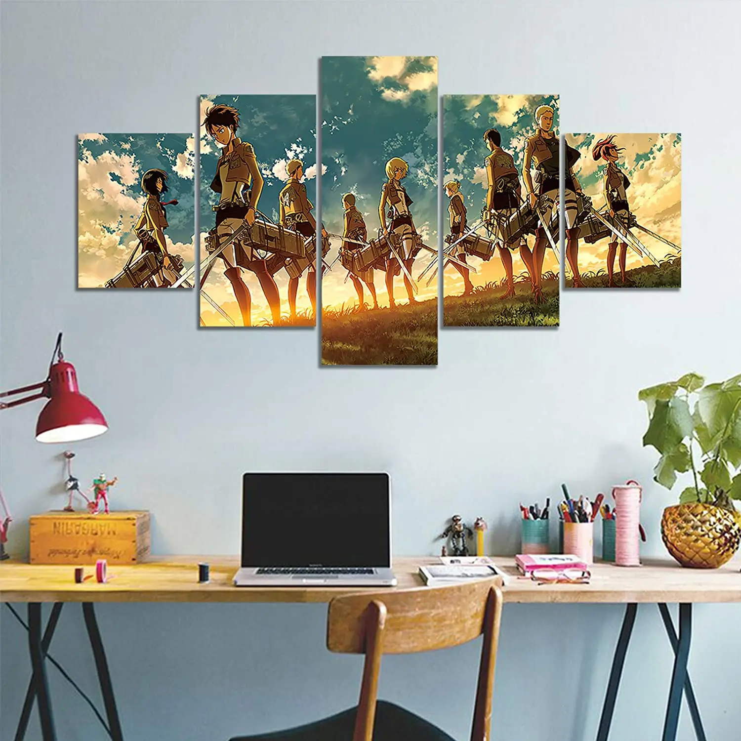 Картина из 5 предметов, аниме Атака Титанов, без рамки, настенное искусство, постеры, картины для гостиной, домашний декор, картины