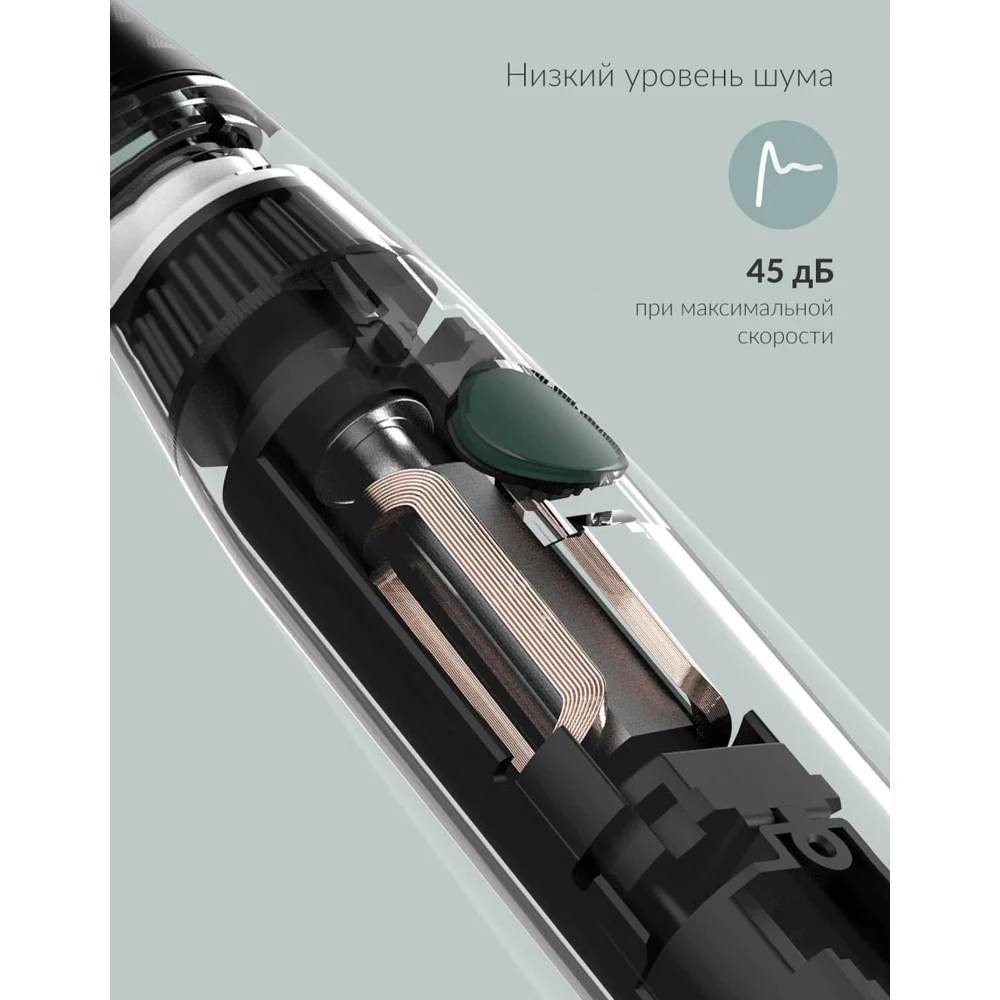 Ультразвуковая. Бесщеточный мотор, до 40000 движ./мин. До 40 дней работы, магнитная зарядка. 2 режима работы (стандартный и глубокая чистка). Плавный старт. Влагозащита IPX7. Размеры 235 х 24 мм.