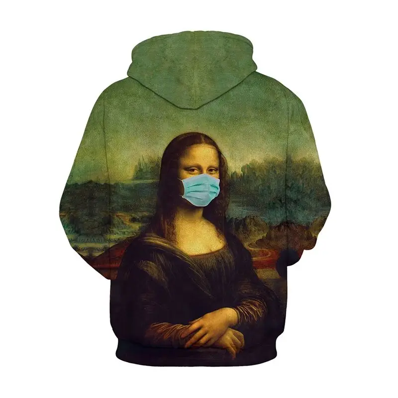Мужская Женская и мужская Персонализированная маска для лица, толстовка с 3D рисунком Моны Лизы, масляная живопись, свободная парная маска большого размера