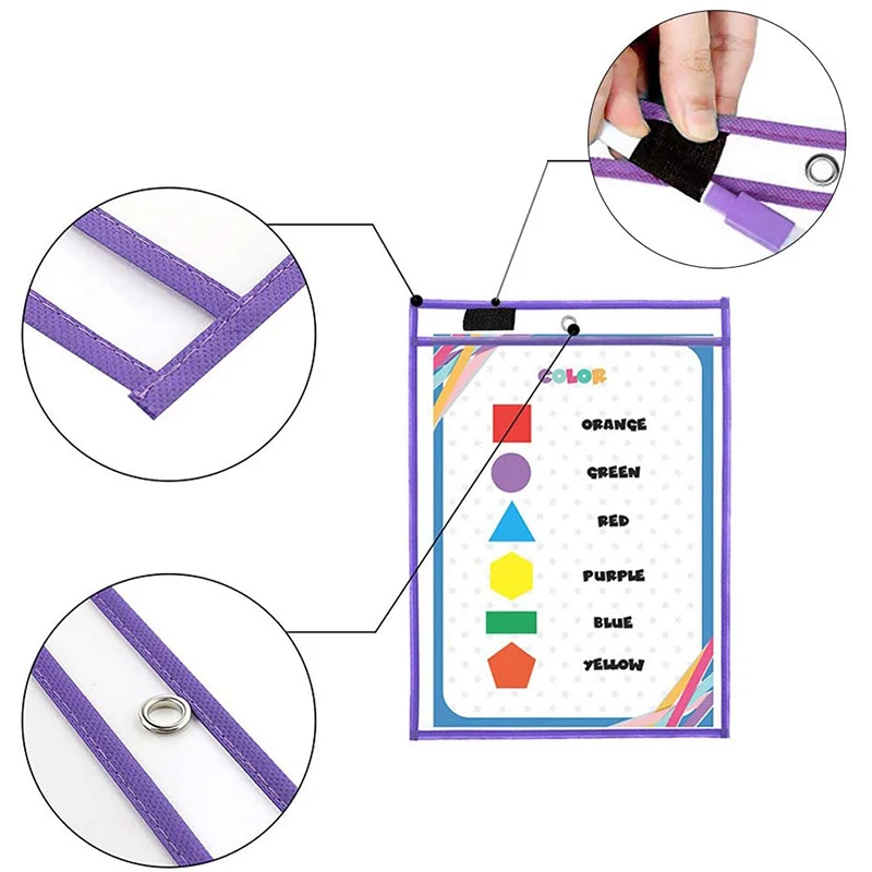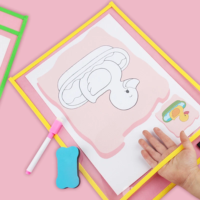 Многоразовые полипропиленовые карманы для сухого стирания с ручкой, прозрачные маркеры для письма и протирания, используемые для обучающих принадлежностей