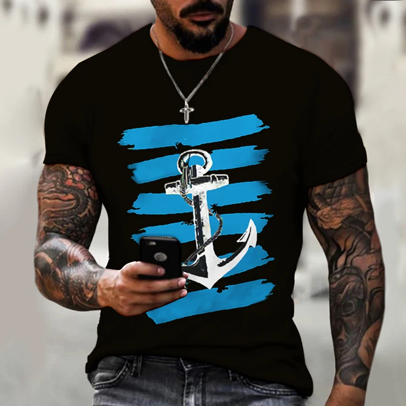 Футболка мужская с 3D-принтом якоря, модная уличная одежда в морско...