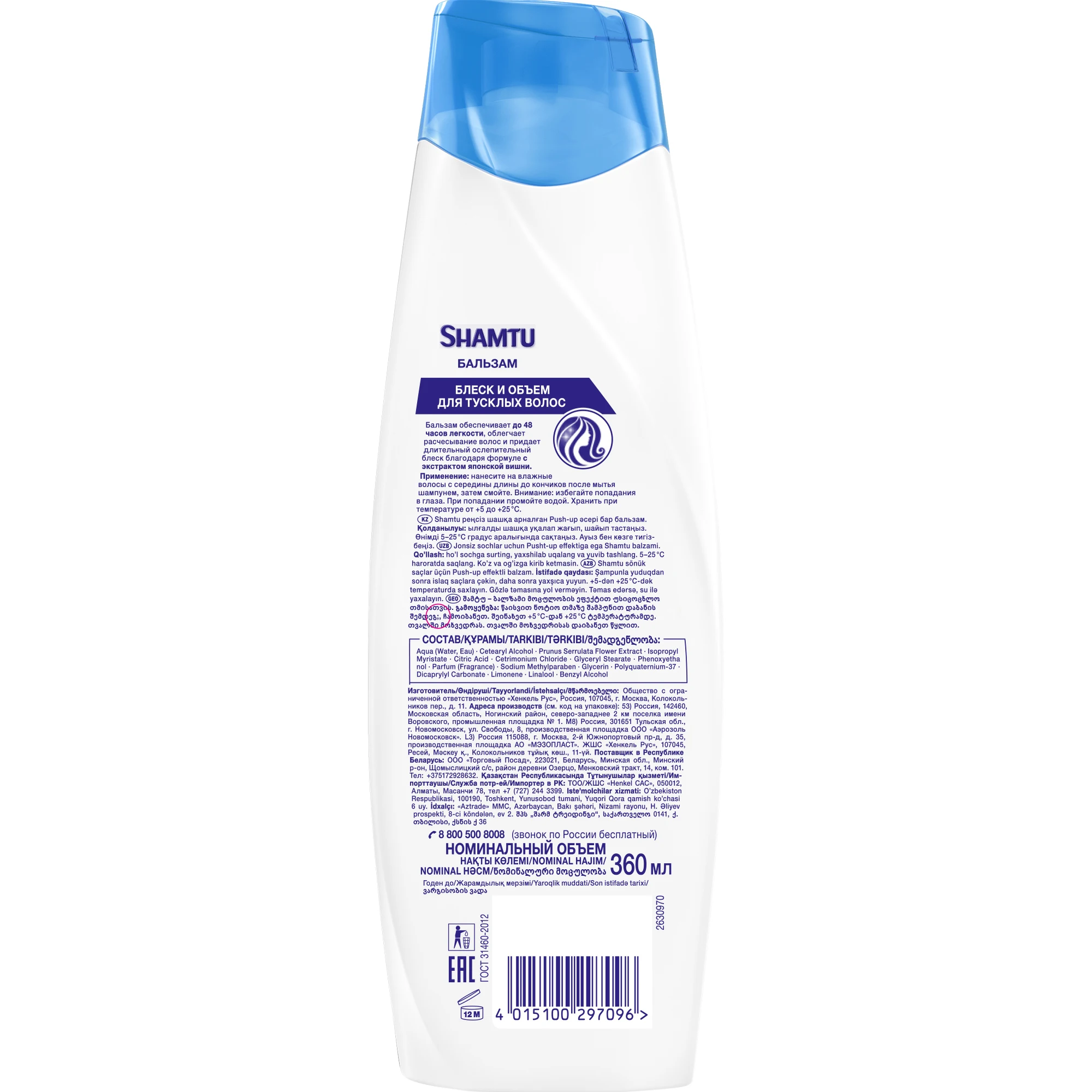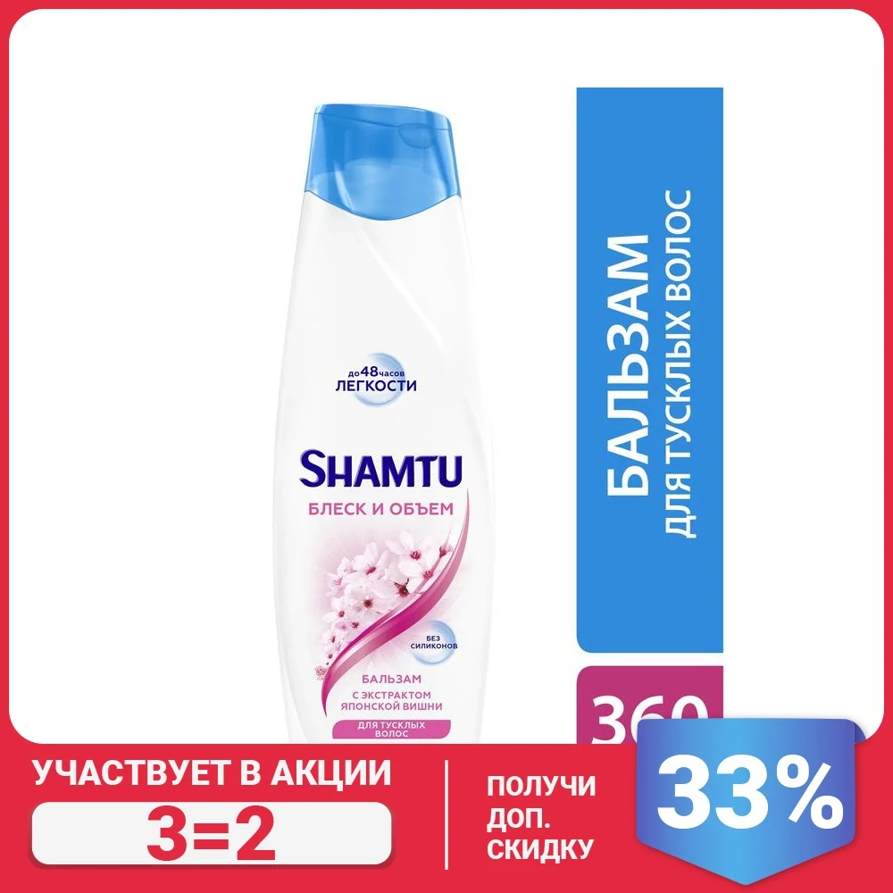 Shamtu Бальзам Блеск и объём, для тусклых волос, с экстрактом японской вишни, объём с Push-up эффектом, 360 мл
