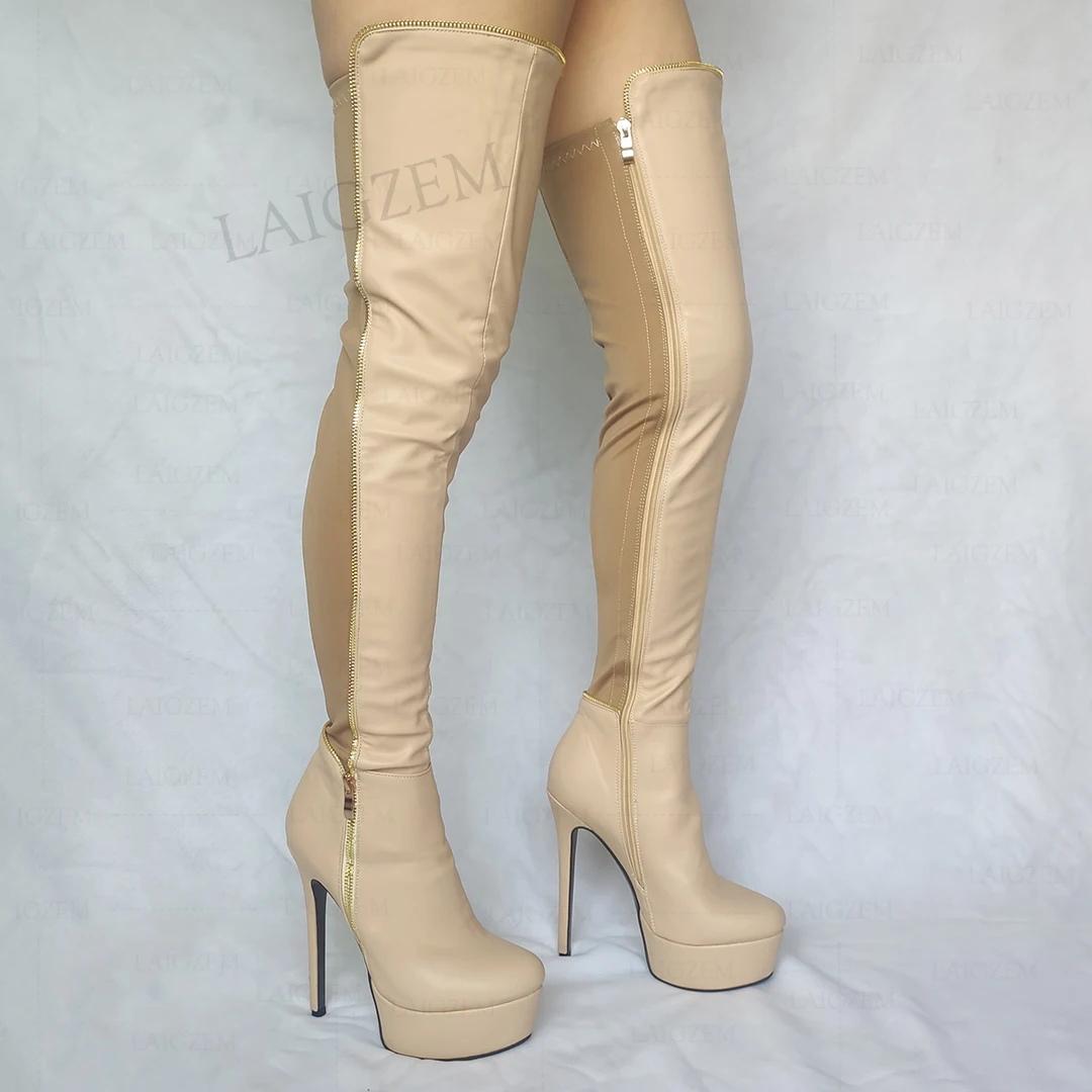 Женские высокие сапоги на молнии SEIIHEM, высокие сапоги выше колена на тонком высоком каблуке, Лоскутная обувь на платформе, женская обувь большого размера 41 43 47 52
