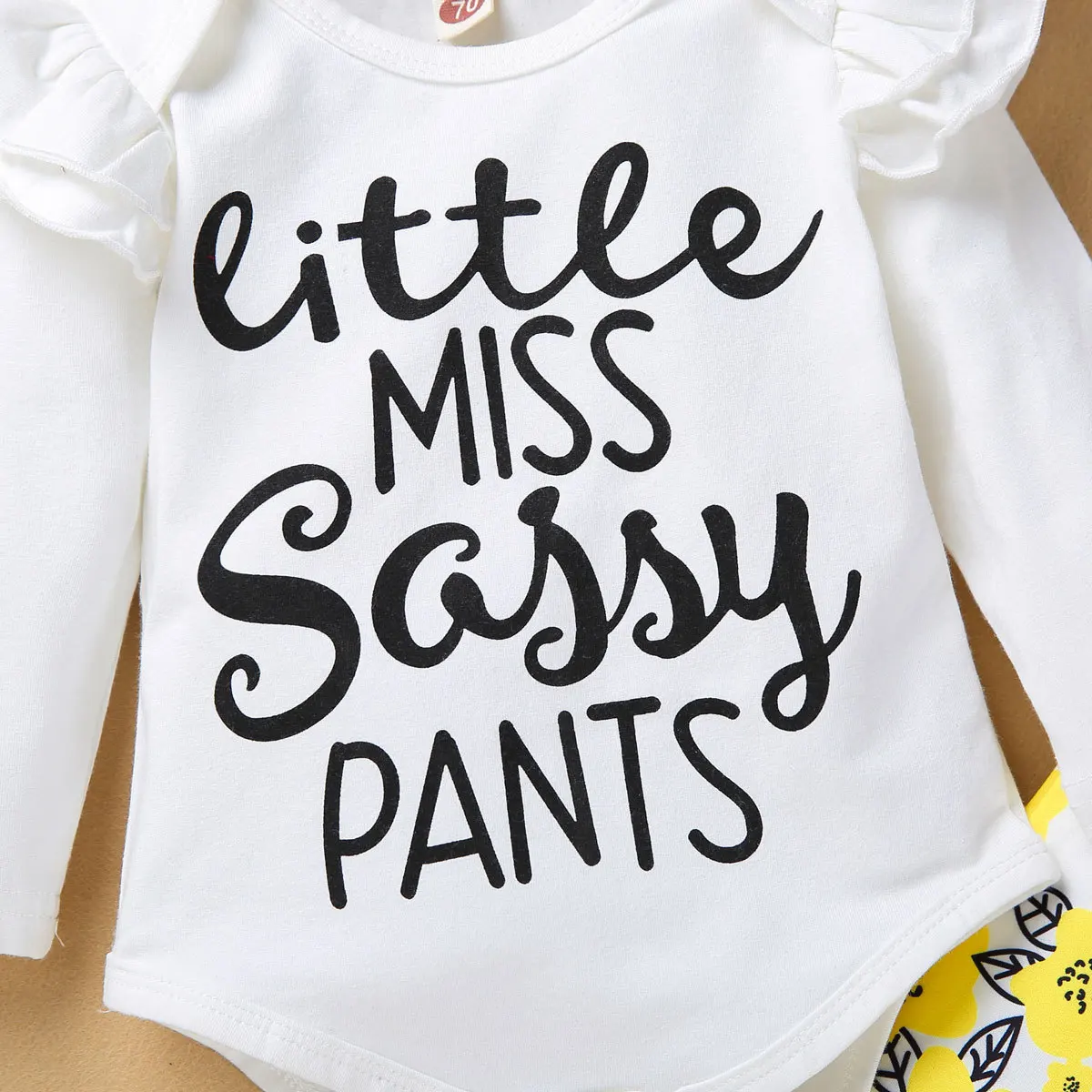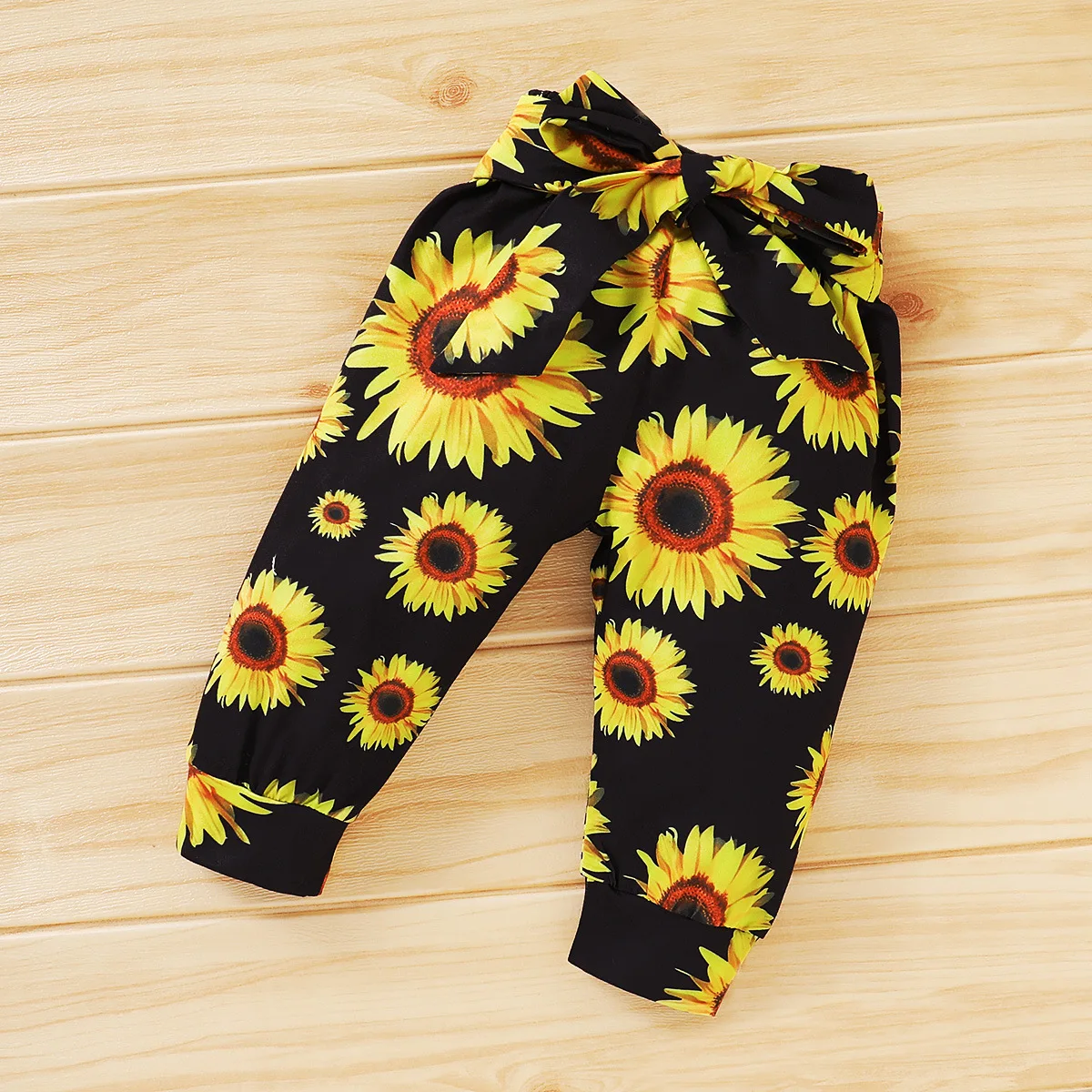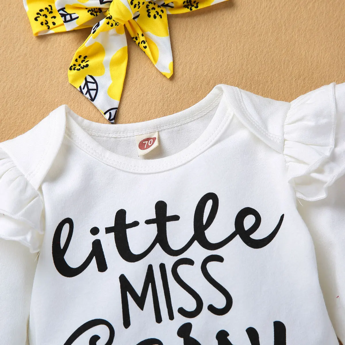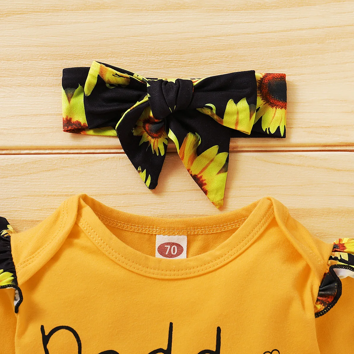 Комбинезон для новорожденных девочек 3 шт., одежда для отдыха на осень и зиму, комбинезон с длинным рукавом, боди, штаны с цветочным принтом, повязка на голову с бантом на 6, 12, 18 месяцев