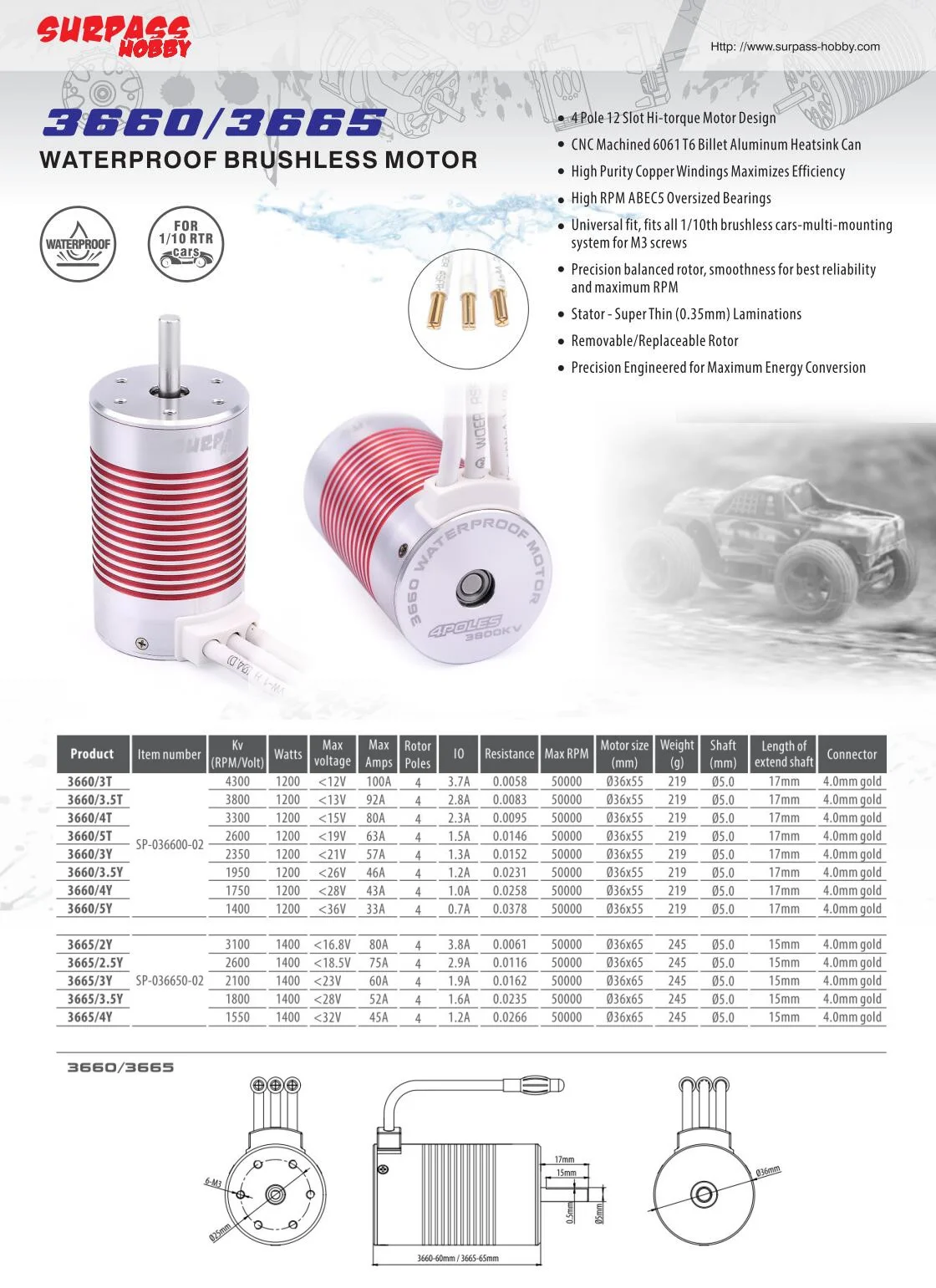 Водонепроницаемый бесщеточный двигатель SURPASS HOBBY 3650 3660 3665 3,175 мм 5,00 мм для Wltoys HSP RC car 18 110 112 модели грузовиков игрушки