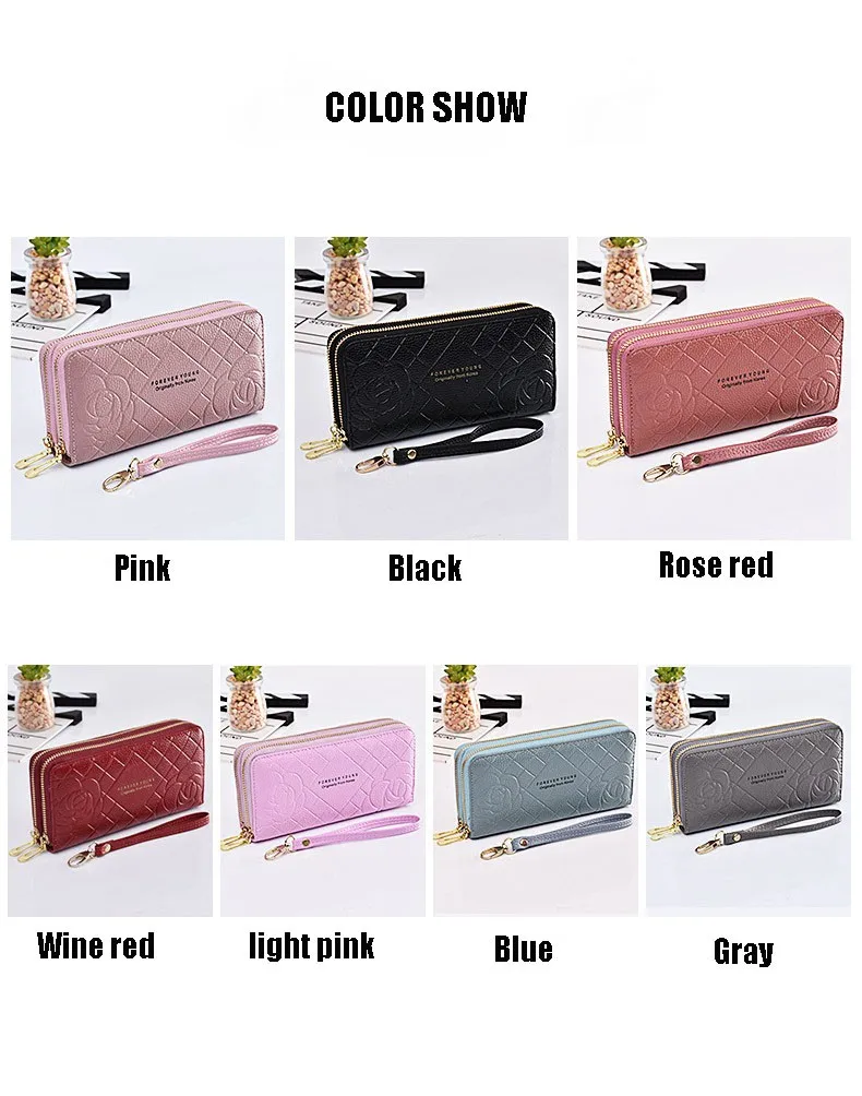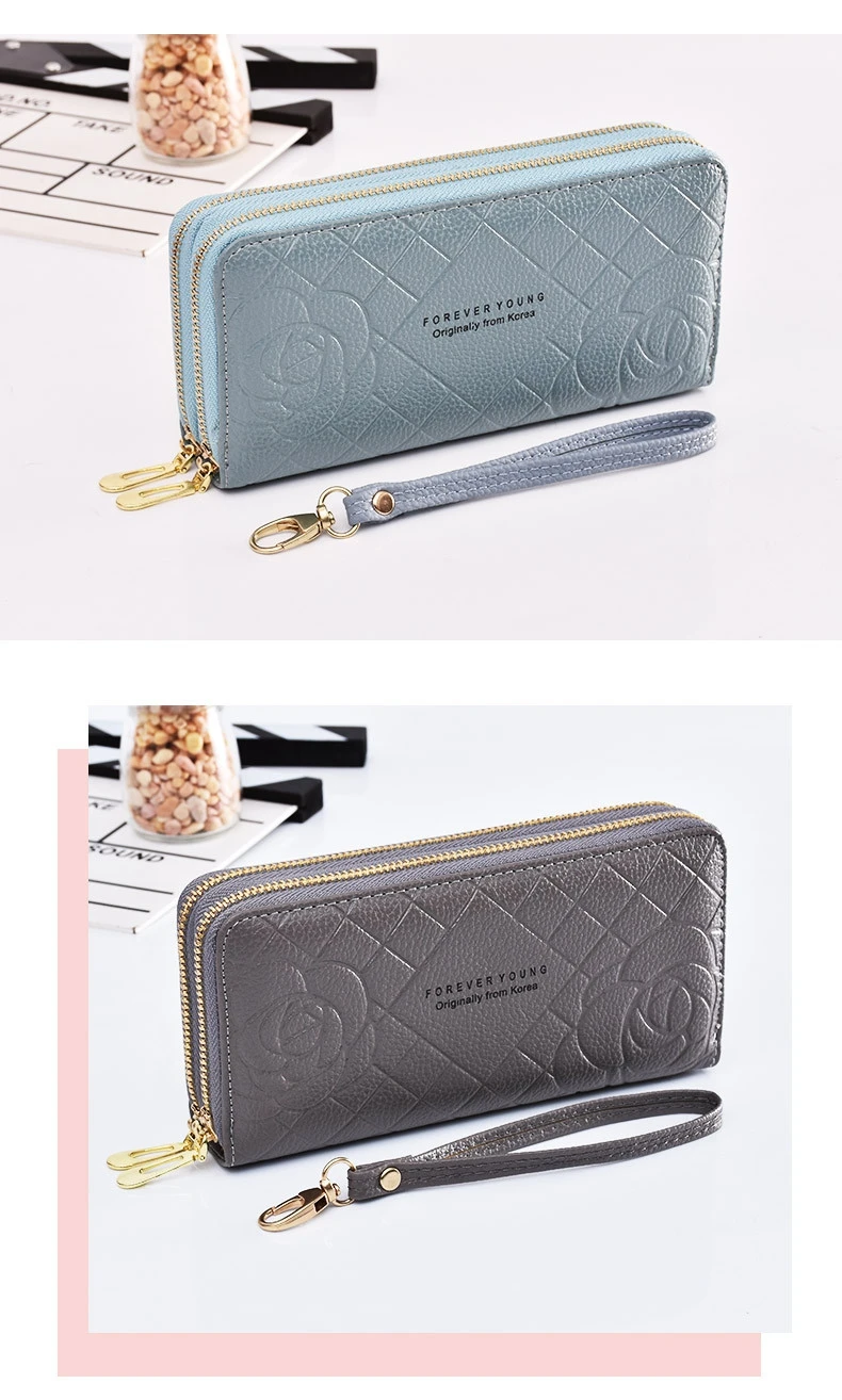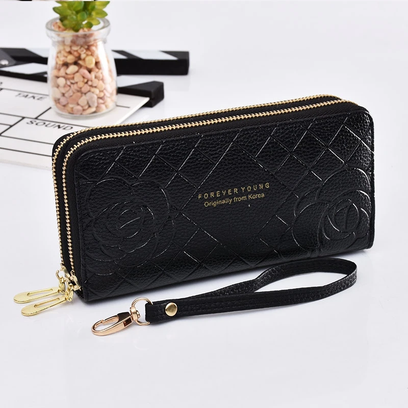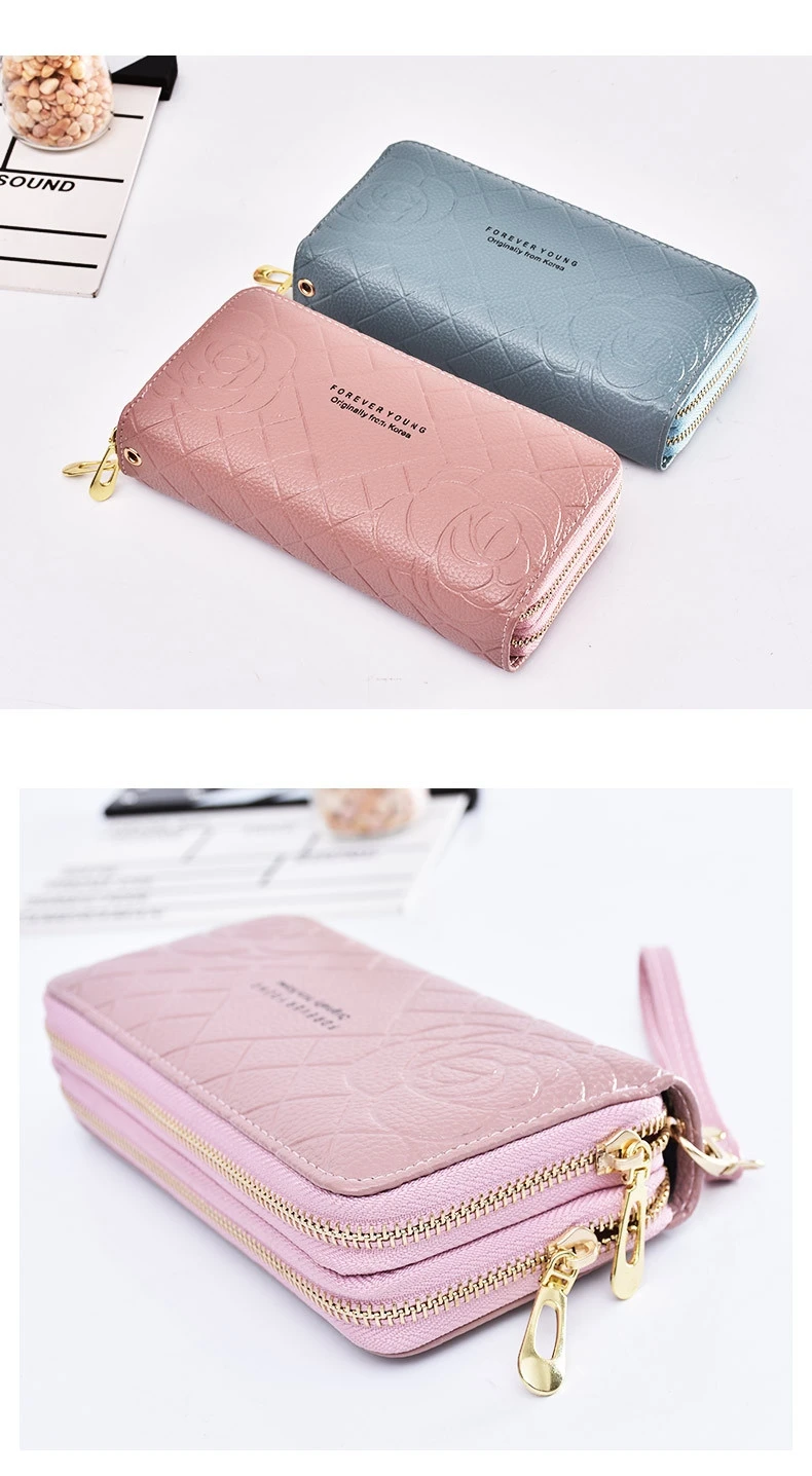 Модные кошельки для телефона, женские кошельки, большой женский кошелек с 3d цветком, кожаные Брендовые женские длинные кошельки, роскошный клатч для карт с двойной молнией
