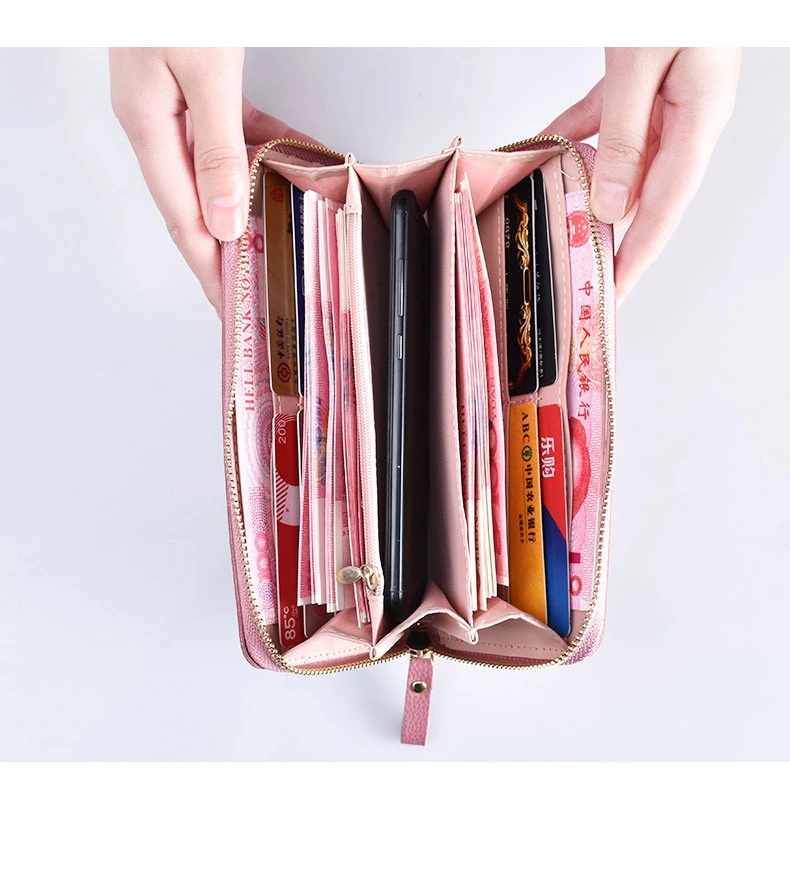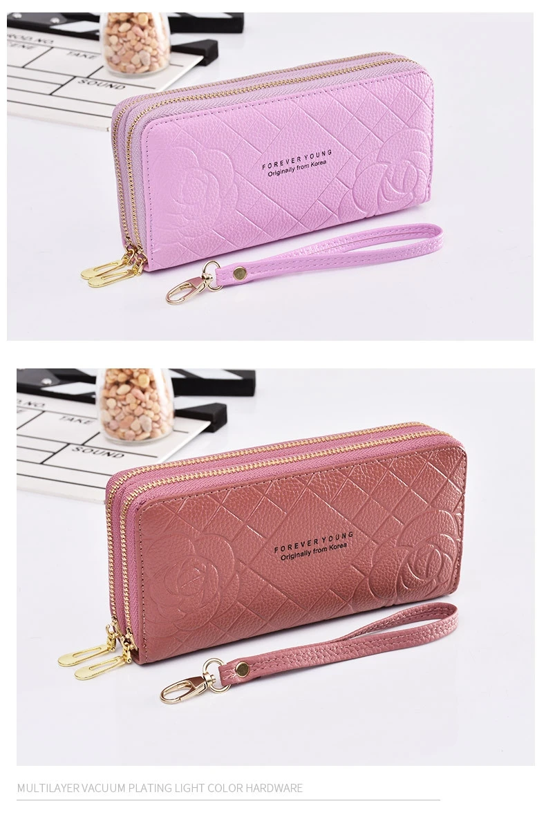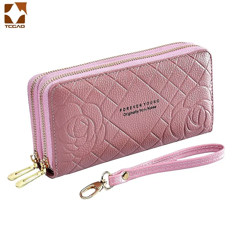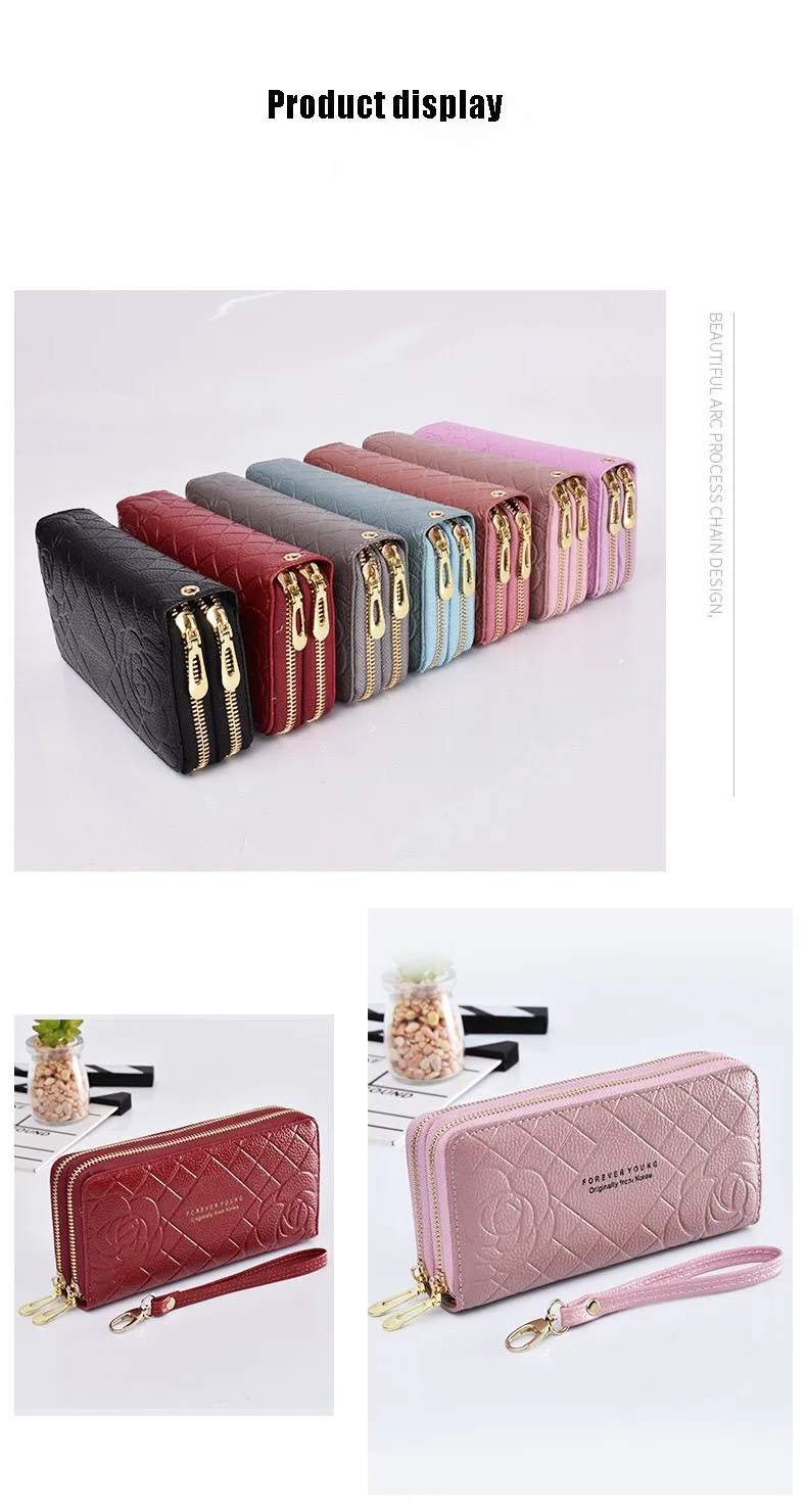 Модные кошельки для телефона, женские кошельки, большой женский кошелек с 3d цветком, кожаные Брендовые женские длинные кошельки, роскошный клатч для карт с двойной молнией