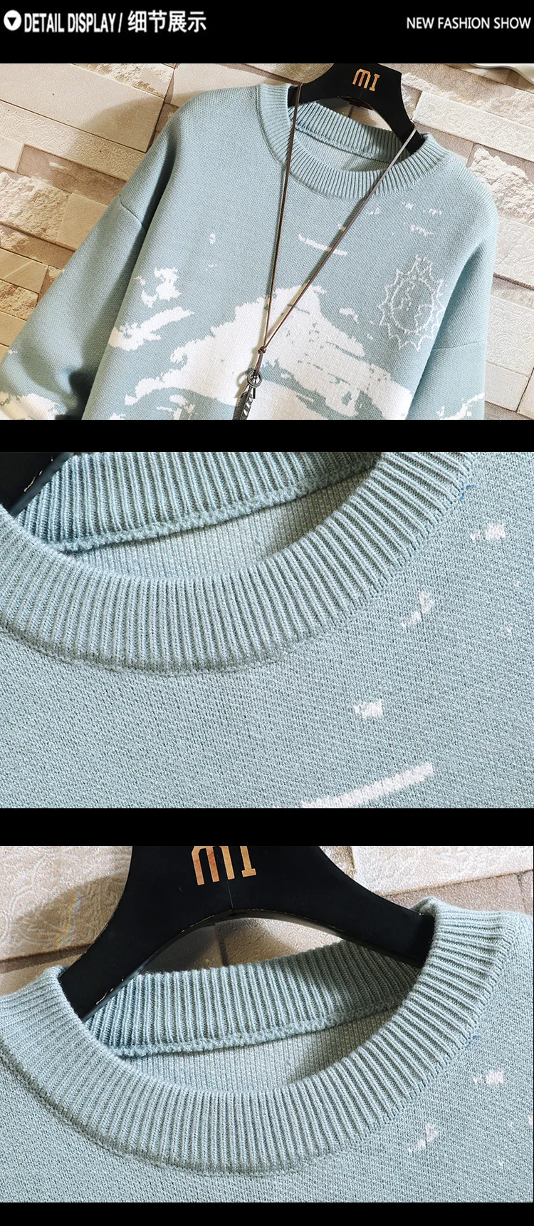 Модный свитер с круглым вырезом, Мужская Уличная одежда в стиле пэч...