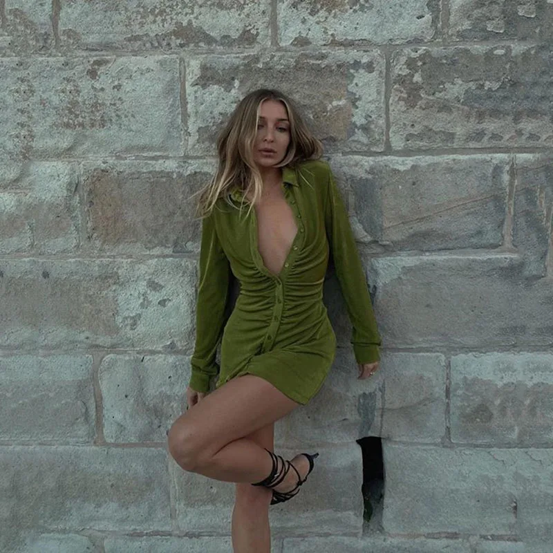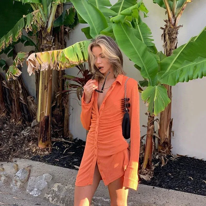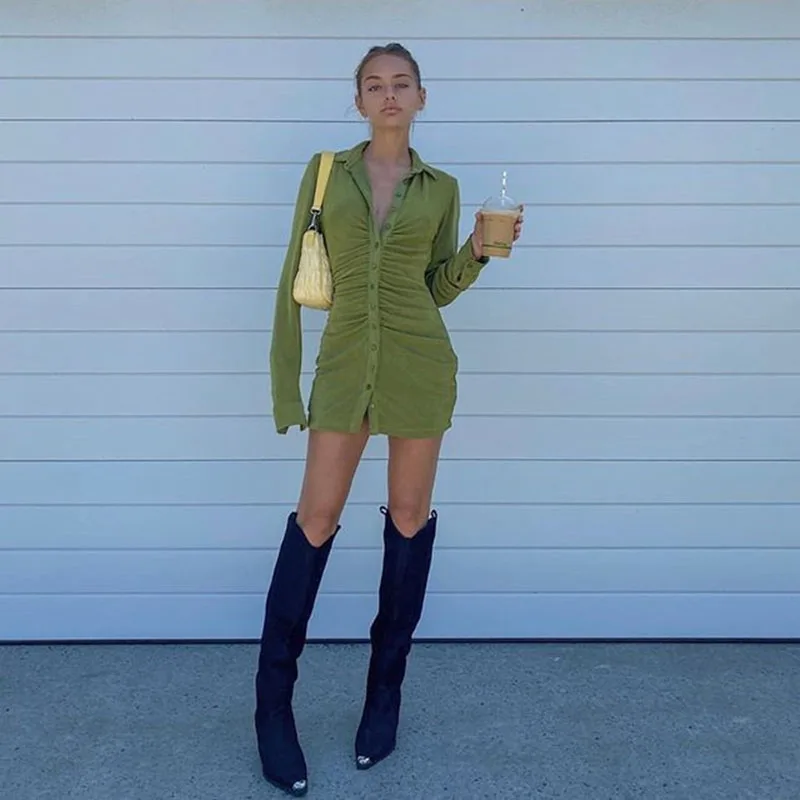 Облегающее платье мини с длинным рукавом Осень 2021 женская одежда однотонный пуловер с нарисованным шнуром элегантный повседневный модный цельный женский