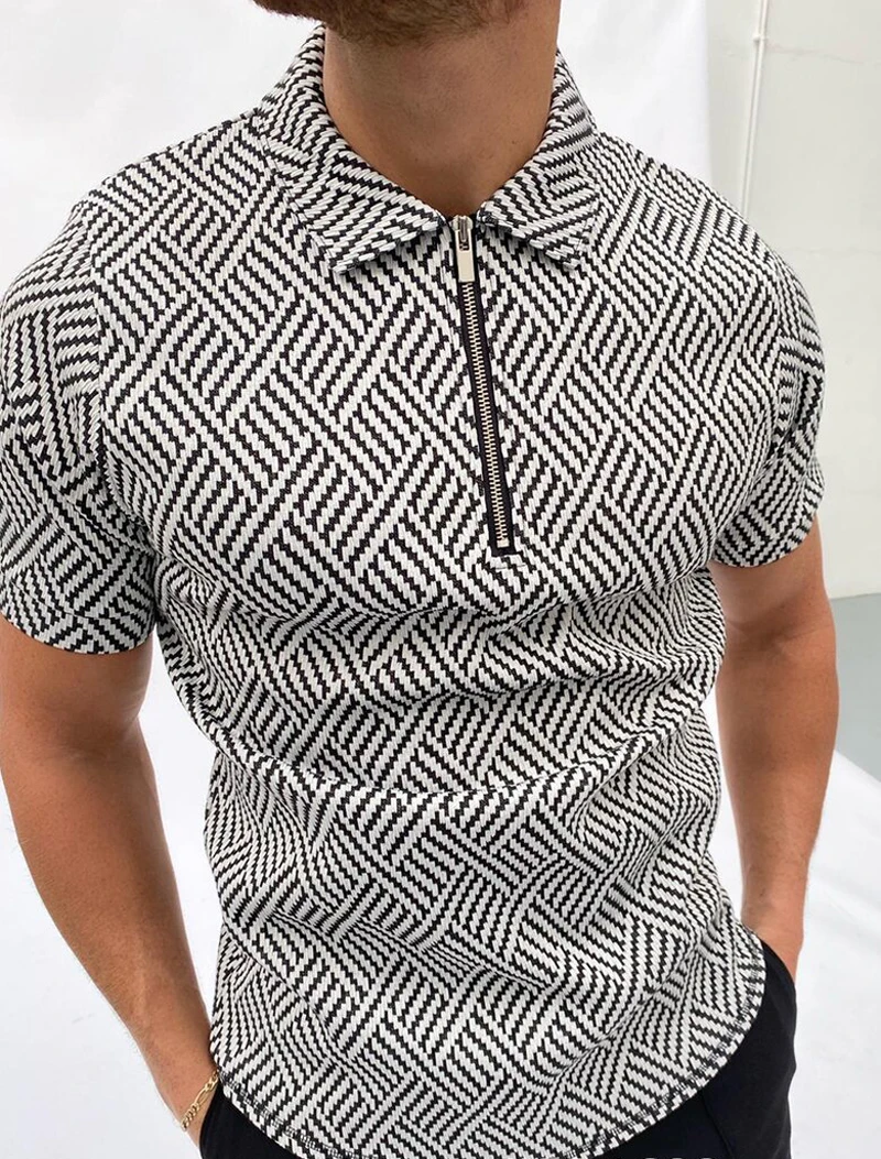 Мужская Летняя трикотажная жаккардовая рубашка-поло на молнии, роск...