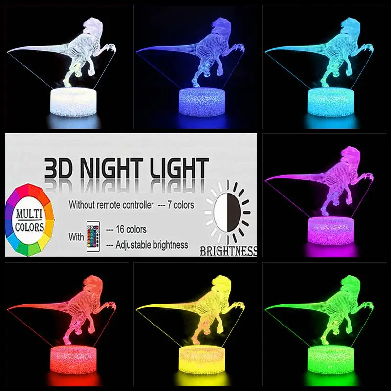 Светодиодный ночсветильник с динозавром, 3D декор для детской спальни, 16 меняющихся цветов, сенсорный пульт дистанционного управления светодиодный настольная лампа, креативный подарок