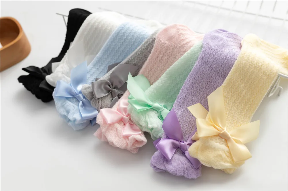 Детские носки сетчатые носки с бантом для малышей летние тонкие про...