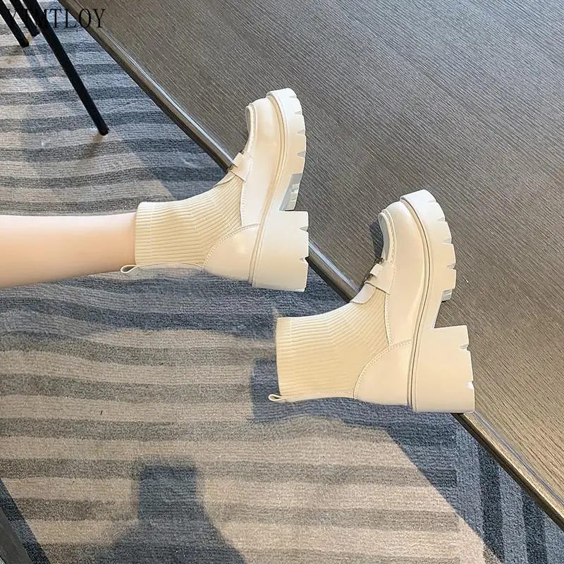 Женские ботильоны из мягкой искусственной кожи, белые мотоциклетные...