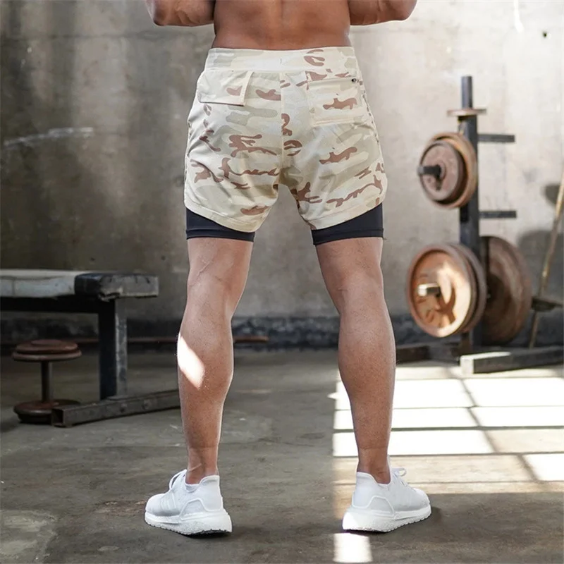 Мужские камуфляжные шорты для бега 2 в 1, двухуровневые быстросохну...