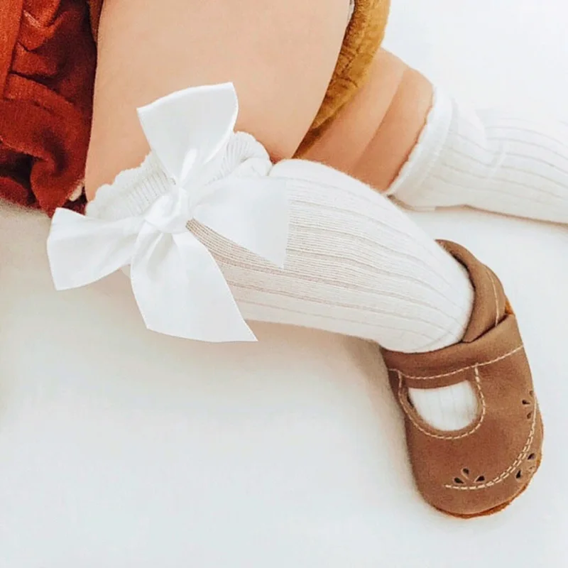 Сетчатые носки для новорожденных девочек и детей на Рождество зимние нескользящие носки с бантом летние весенние хлопковые махровые носки до колена принцессы