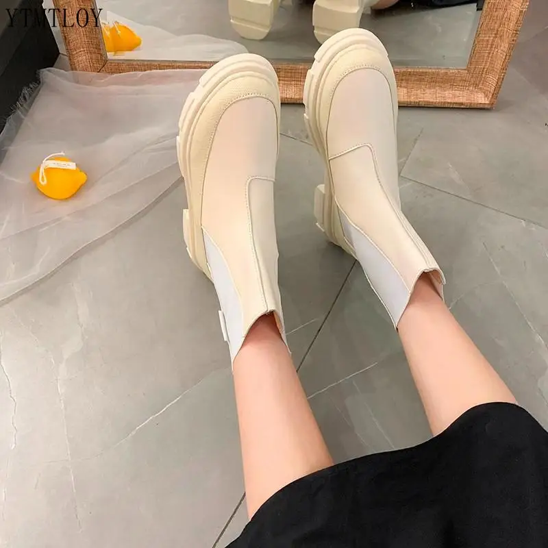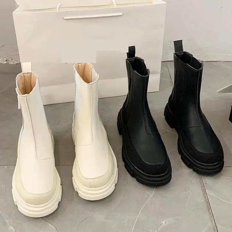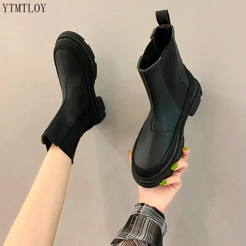 Женские осенние ботильоны, брендовая Дизайнерская обувь Челси, женские модные ботильоны на платформе с круглым носком, без застежки