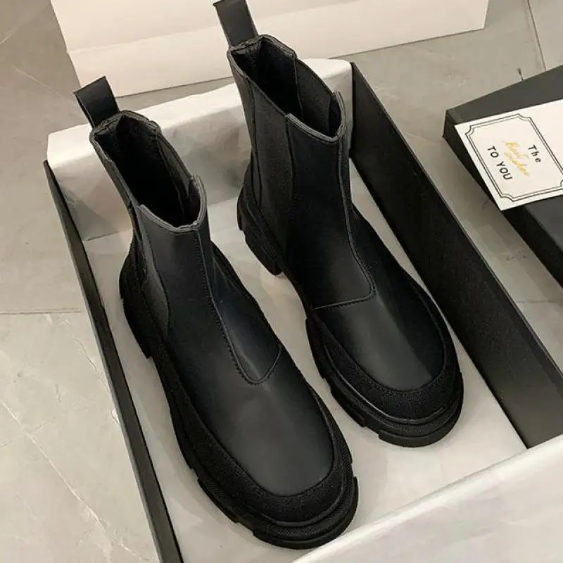 Женские ботинки челси на толстой подошве, боевые ботинки средней дл...