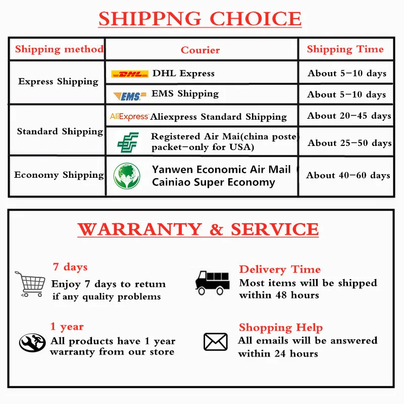 3.-Мы предоставляем бесплатный ремонт в течение одного года с момента покупки. В течение первого 1 месяца мы оплатим стоимость доставки в одну сторону (от нас до вашего местоположения); после 1 месяца покупки покупатель должен оплатить стоимость доставки двумя способами.