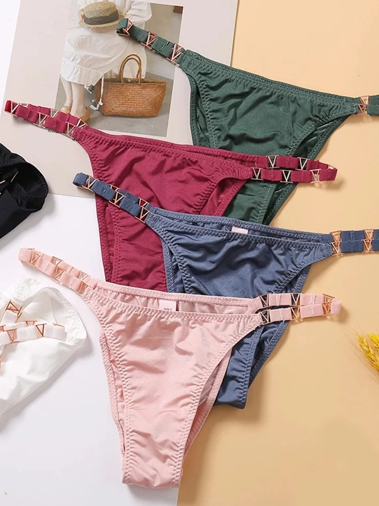Сексуальные женские стринги с металлической пряжкой на талии, эластичные стринги с Т-образной спинкой, женские трусики из вискозы, женские трусы, трусы с низкой талией, бикини, купальник