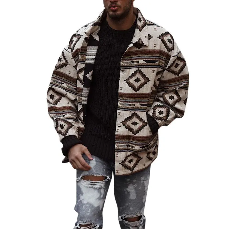 Мужская винтажная куртка с геометрическим принтом, однобортная курт...