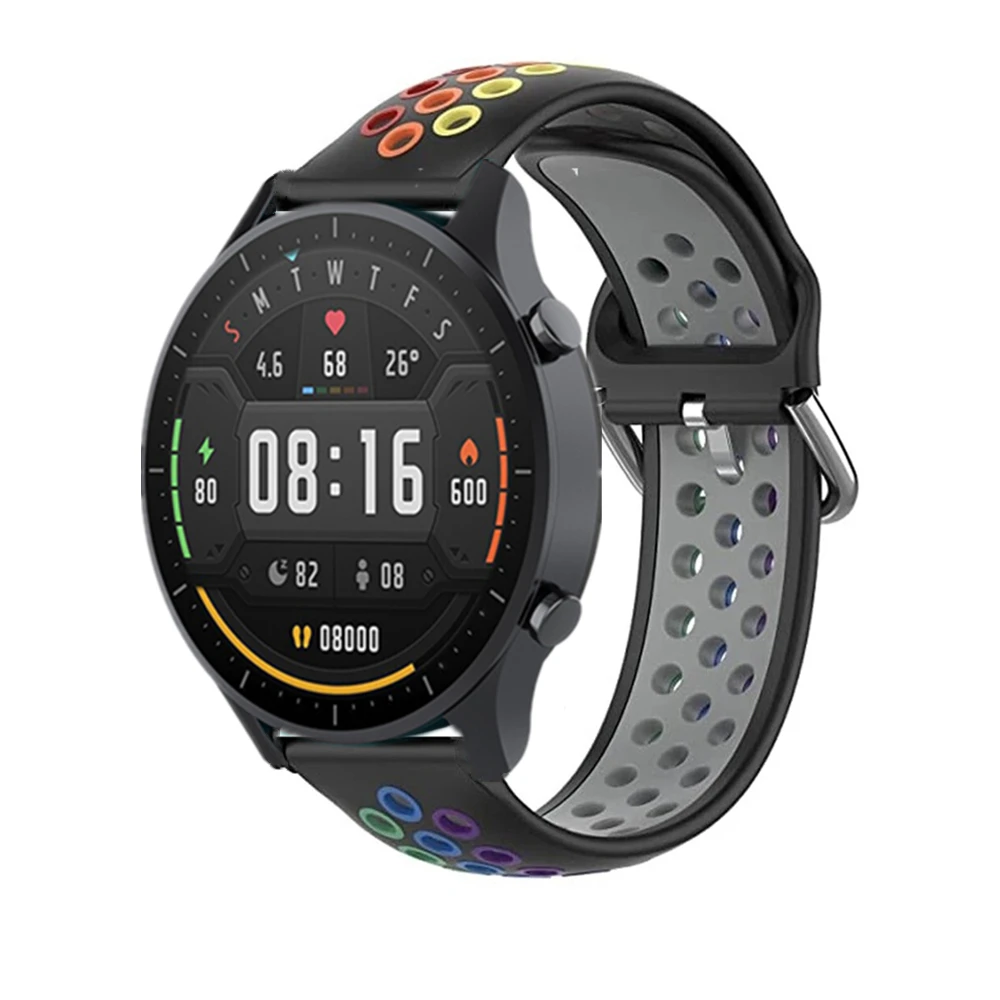 Ремешок силиконовый для Xiaomi Watch Color MI, Радужный дышащий вод...