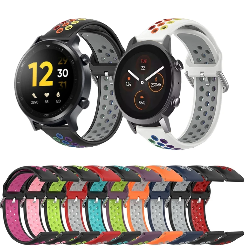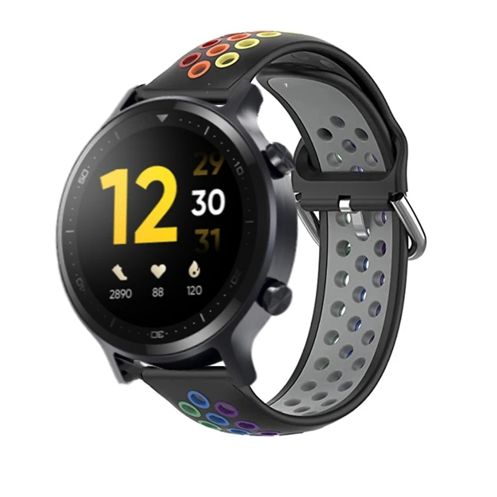 Радужный ремешок для Realme Watch S Pro, силиконовый спортивный браслет для Ticwatch E3 E 2 S2 GTH GTX, Водонепроницаемый умный ремешок для часов
