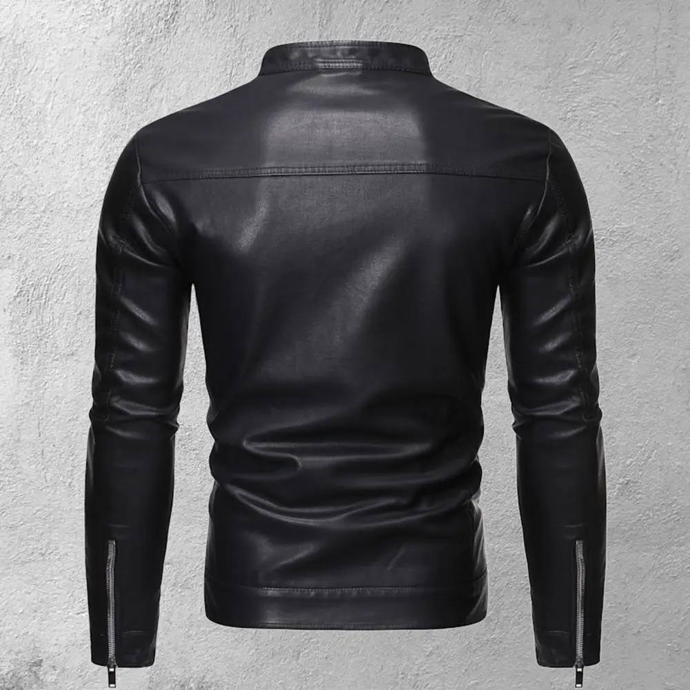 Куртка мужская с воротником-стойкой, модная ветрозащитная приталенная мотоциклетная верхняя одежда из искусственной кожи, на молнии, Осень-зима