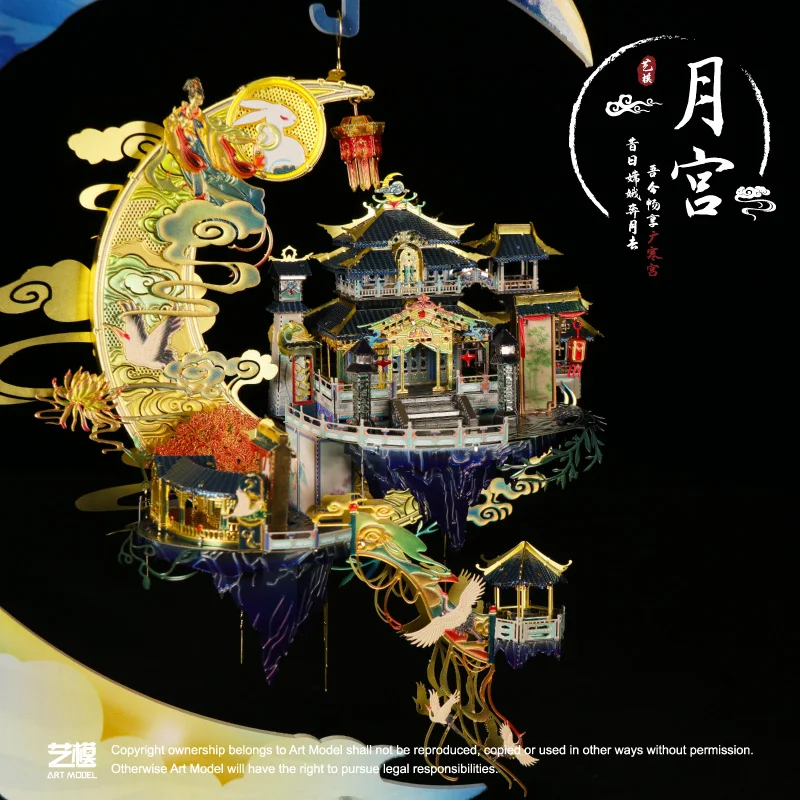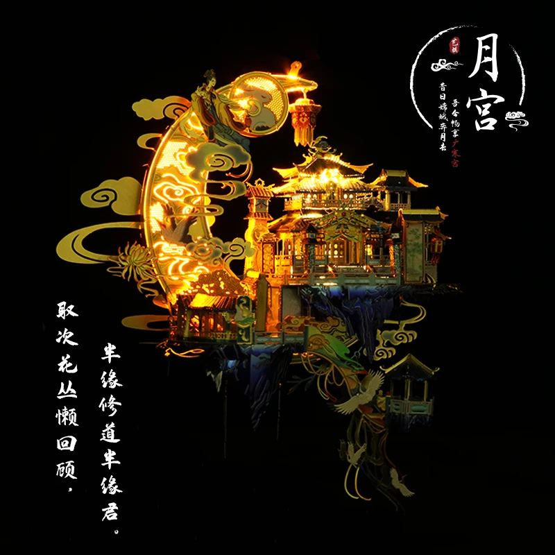 3D полностью металлический трехмерный пазл лунный дворец самодельная сборка миниатюрная мебель книжный шкаф вставка модель Roombox здание