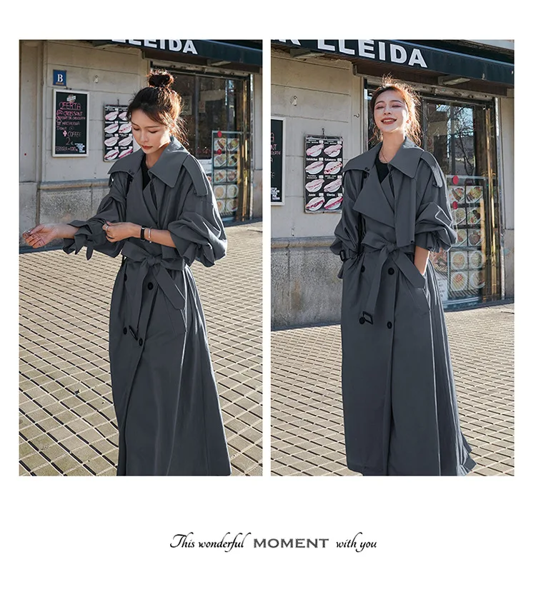 Женский двубортный плащ с поясом, Свободное длинное пальто большого...
