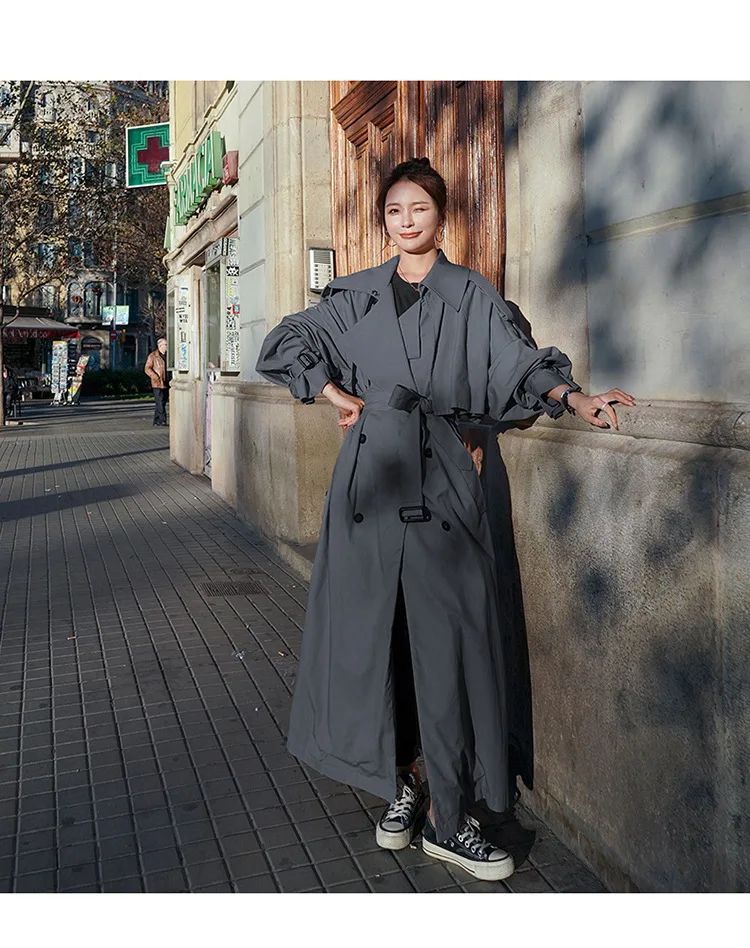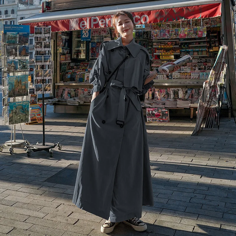 Дамский плащ ветровка весна осень дождевик Большие размеры X-Long женский свободный тренчкот корейская мода двубортный с поясом