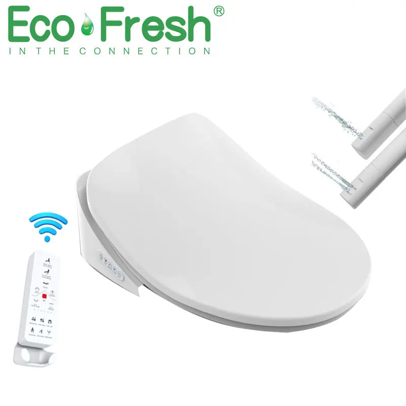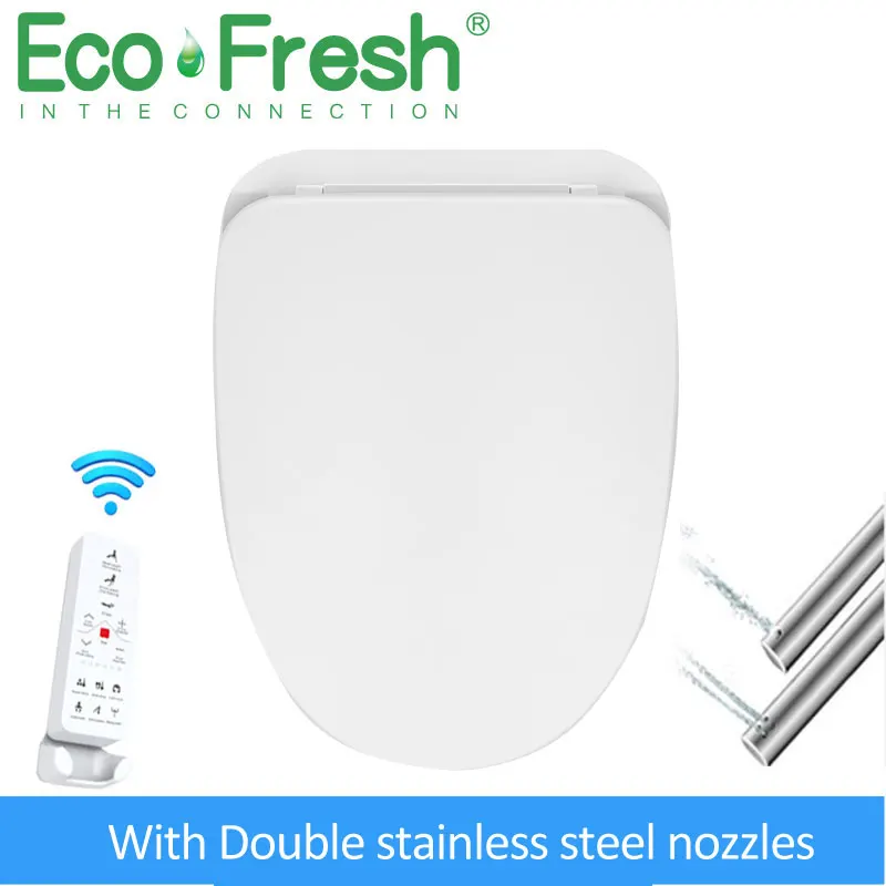 Круглая умная крышка для унитаза EcoFresh, стандартное электрическое биде с двумя насадками, тепловая Чистка, сухая спа