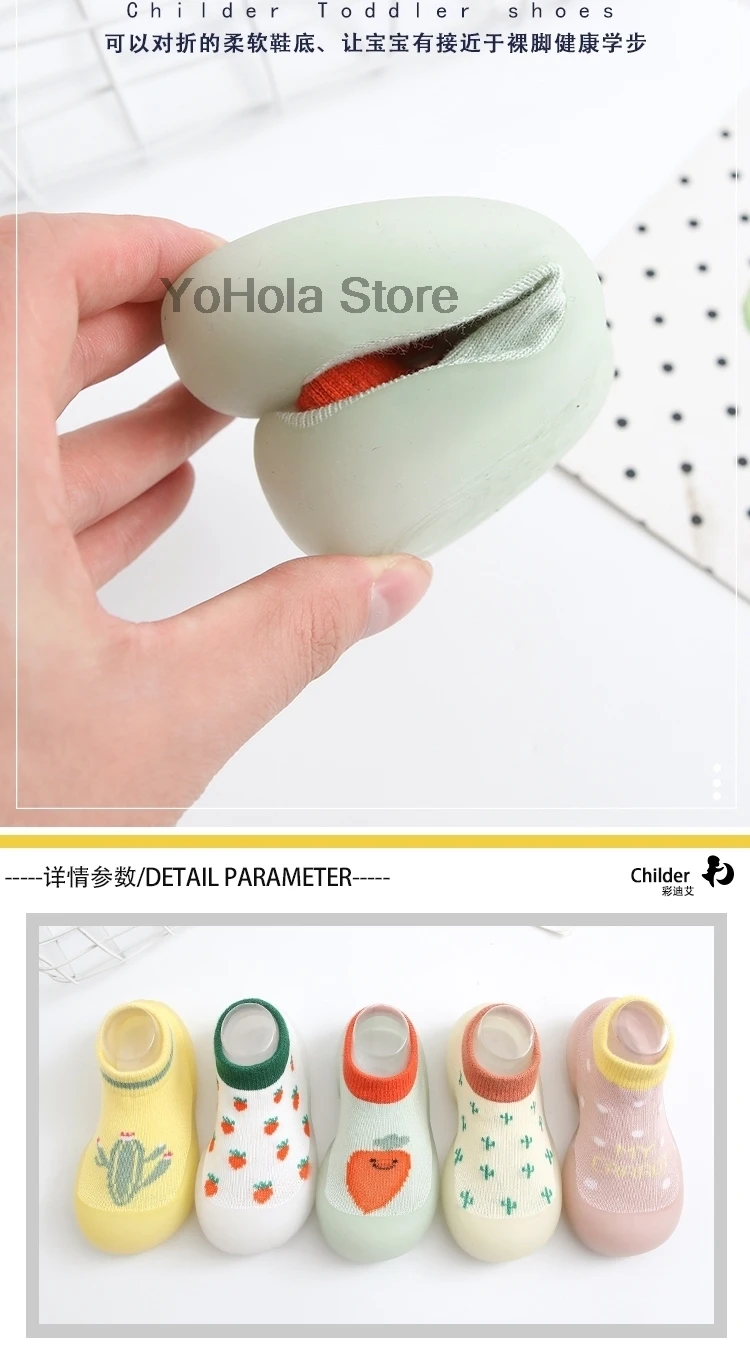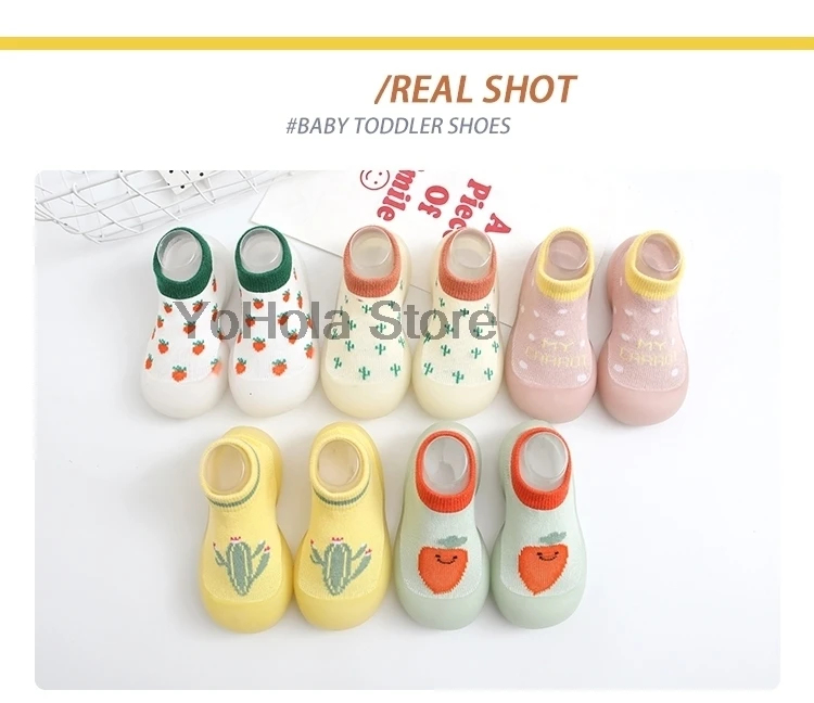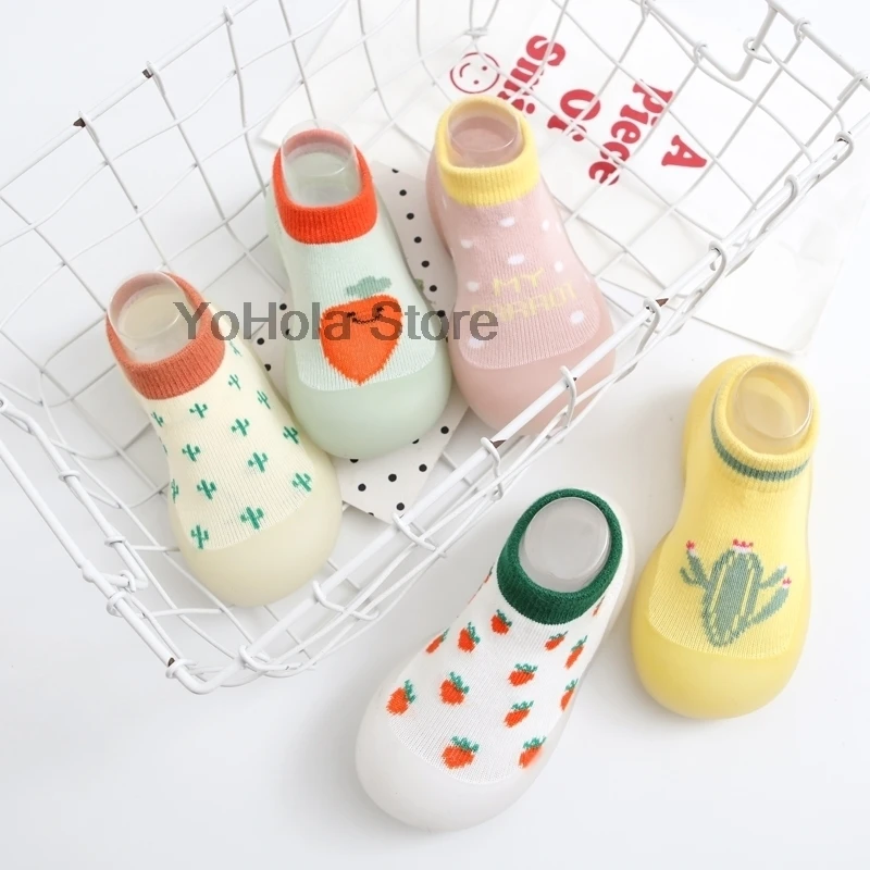 Детские Нескользящие носки с мультяшным рисунком, всесезонные, с принтом клубники, детская обувь с резиновой подошвой, модные носки для малышей