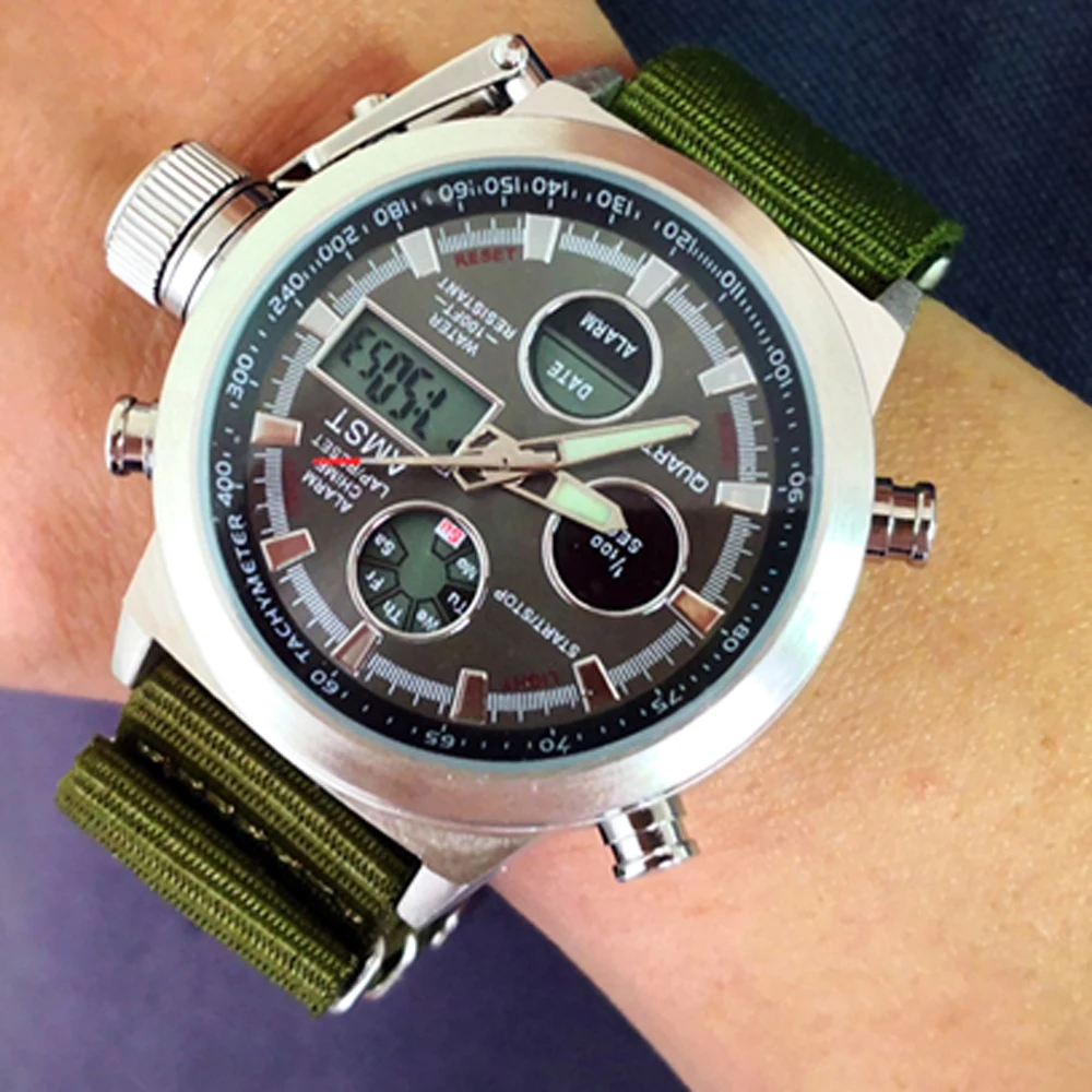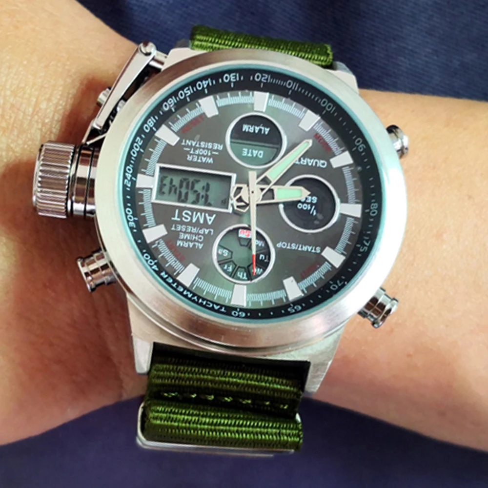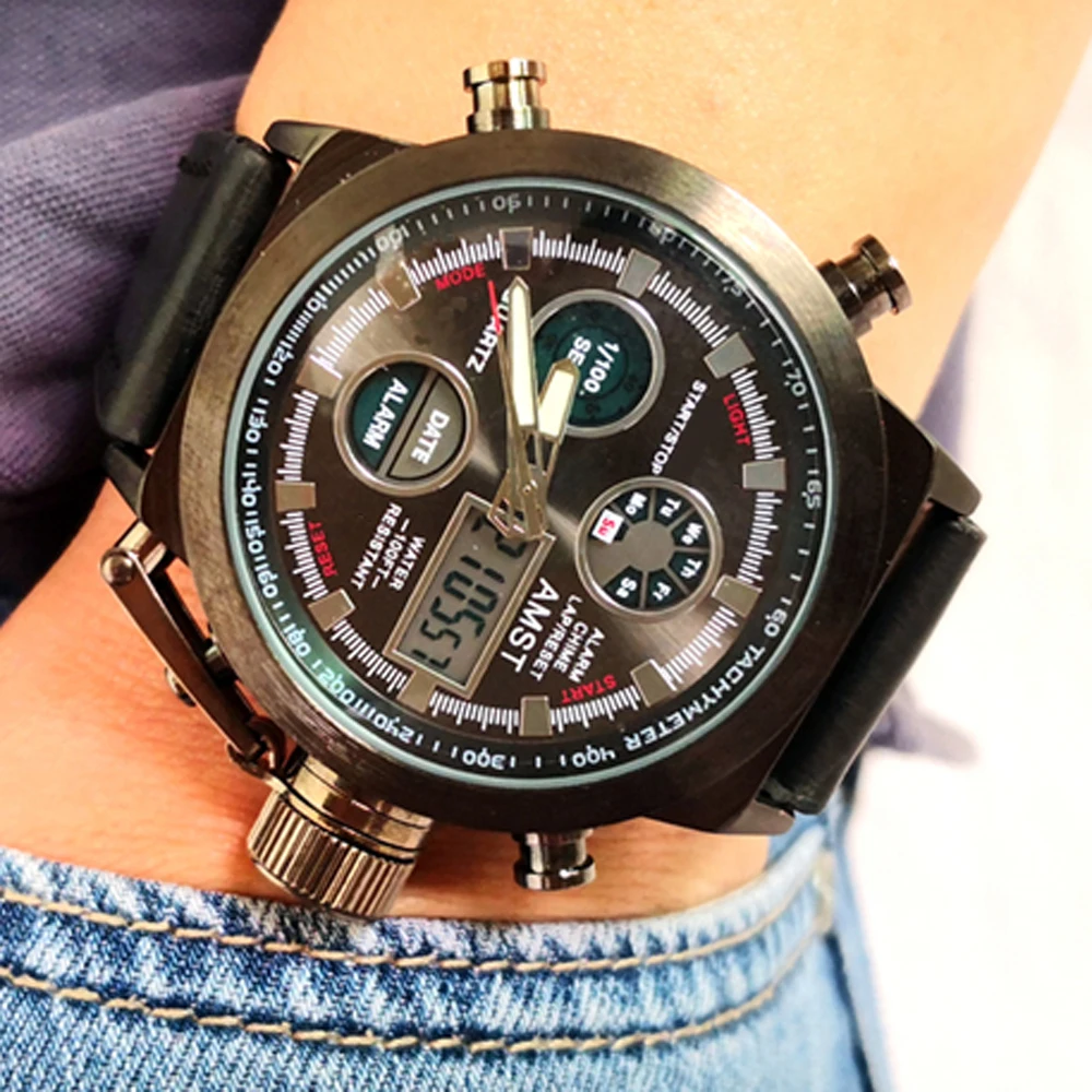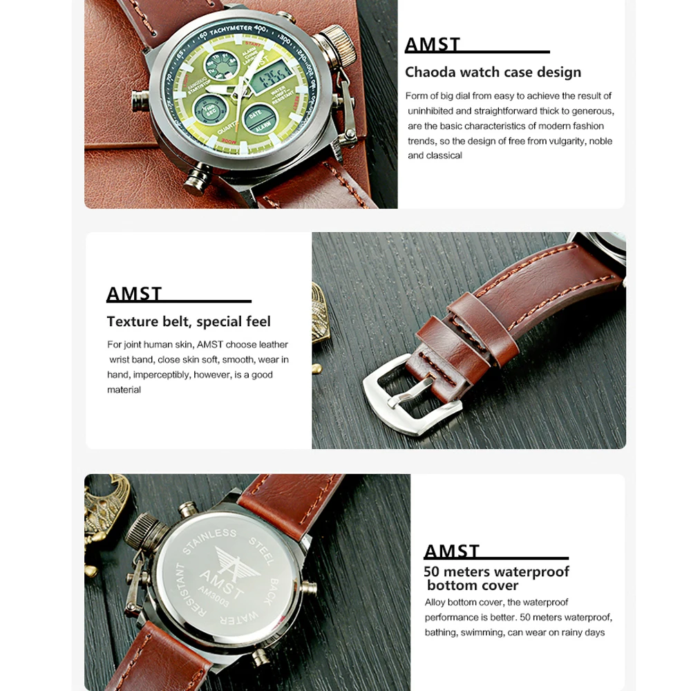 Часы наручные AMST Мужские Аналоговые, цифровые водонепроницаемые спортивные светодиодные, с двойным дисплеем, брендовые кварцевые