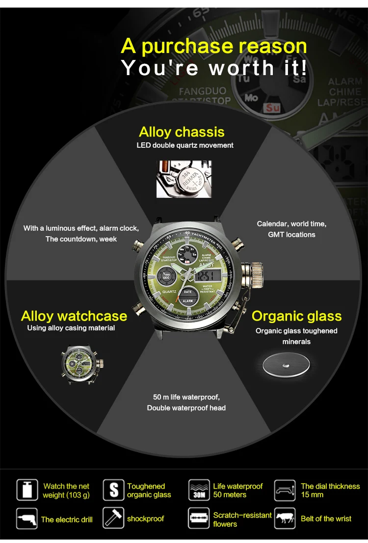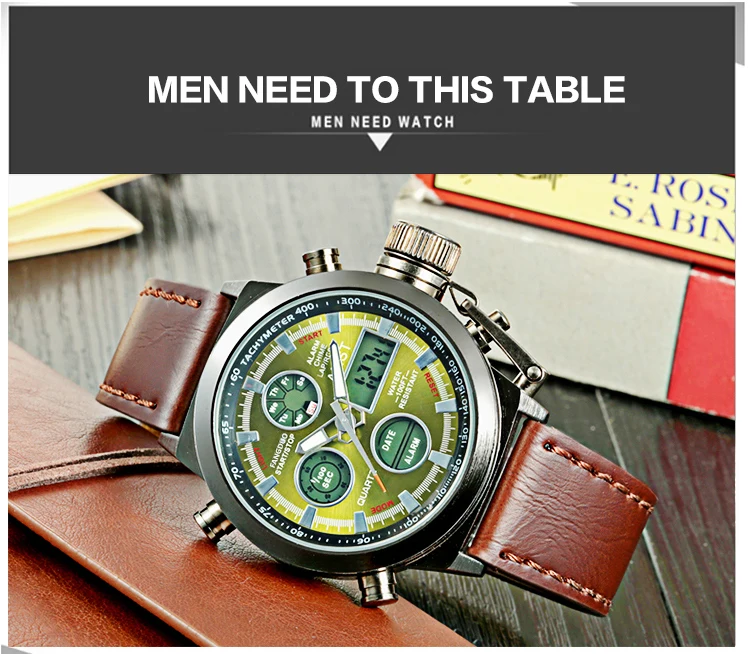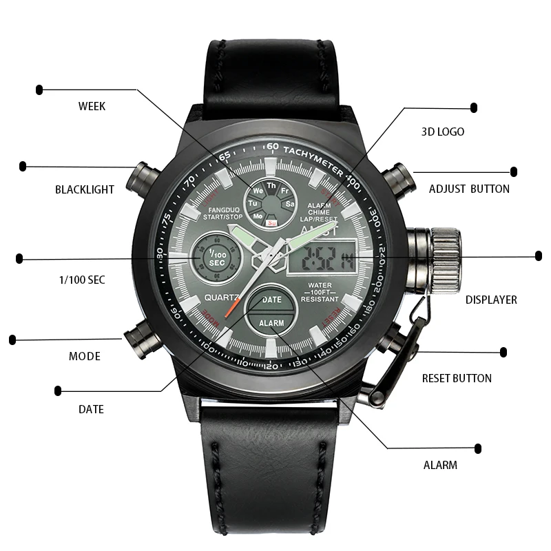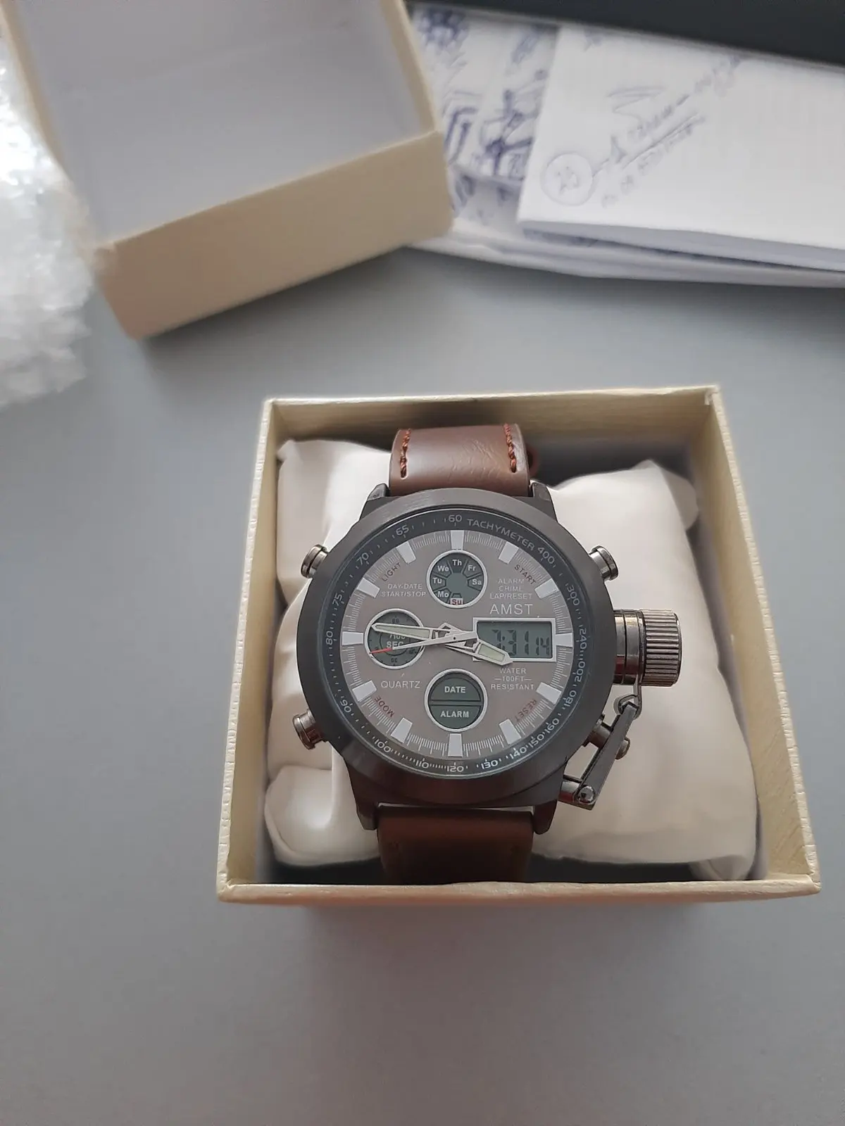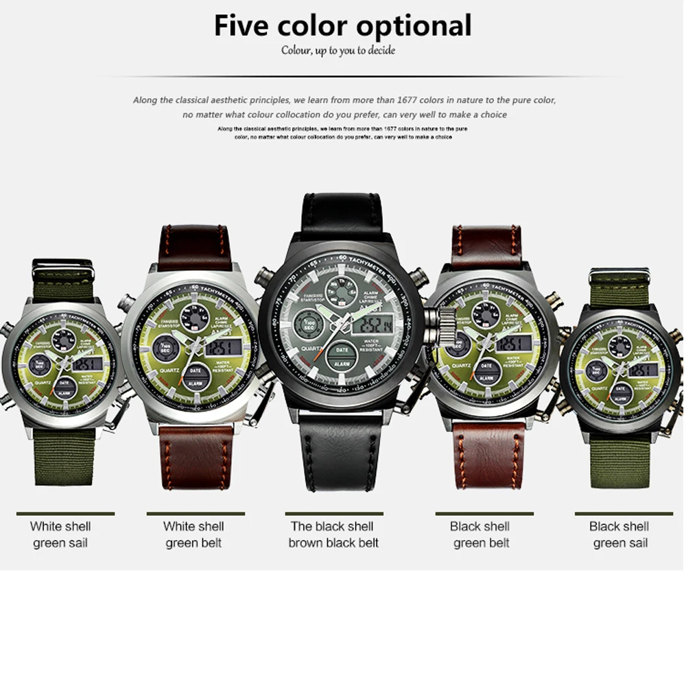 Часы наручные AMST Мужские Аналоговые, цифровые водонепроницаемые спортивные светодиодные, с двойным дисплеем, брендовые кварцевые