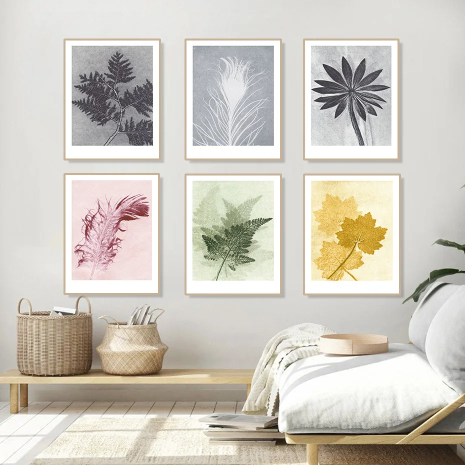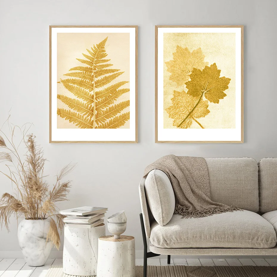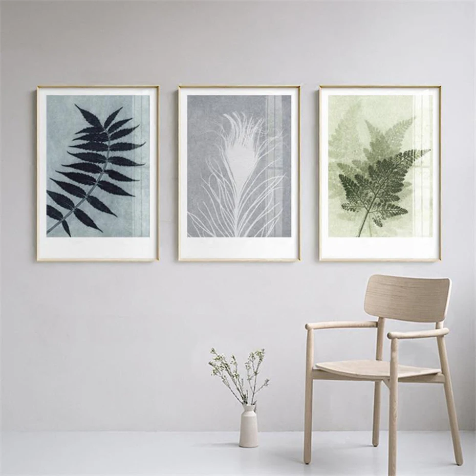 Винтажные растительные листья, абстрактная живопись, Золотой Зеленый художественный плакат и принты, современный декор настенные картины для гостиной Pop