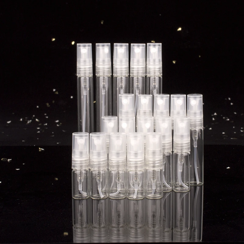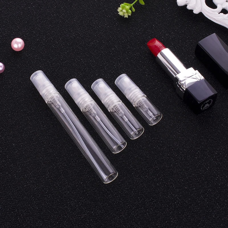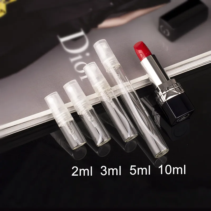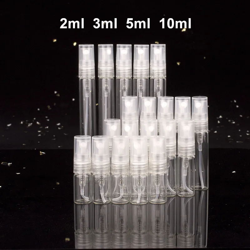 100 шт.лот 2 мл 3 мл 5 мл 10 мл прозрачный стеклянный флакон с распылителем для духов многоразовые пустые флаконы для образцов тонкие стеклянные флаконы размер для путешествий