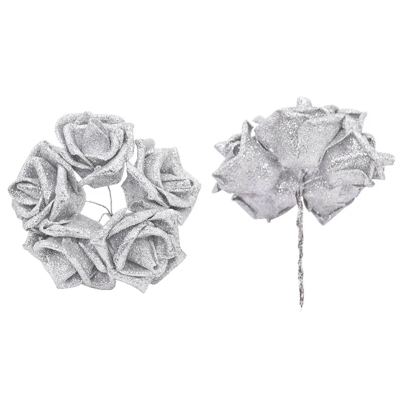 10 шт., 5,5 см, Блестящие розы, фотообои для свадебного украшения, золотой, красный цветочный букет сделай сам, Рождественские декоративные розы