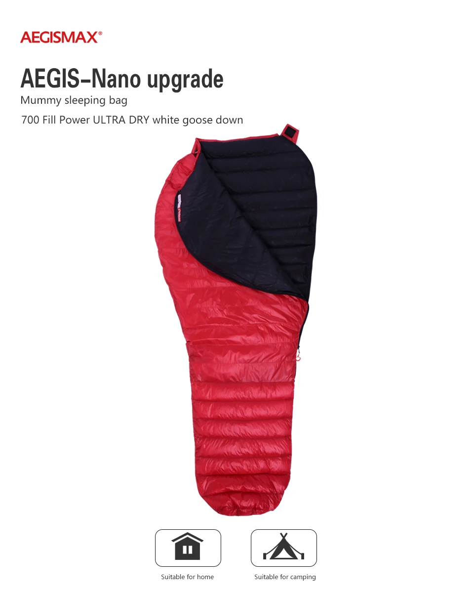 Сверхсветильник спальный мешок AEGISMAX Nano для взрослых, водонепроницаемый нейлоновый спальный мешок для кемпинга, 3 сезона, гусиный пух