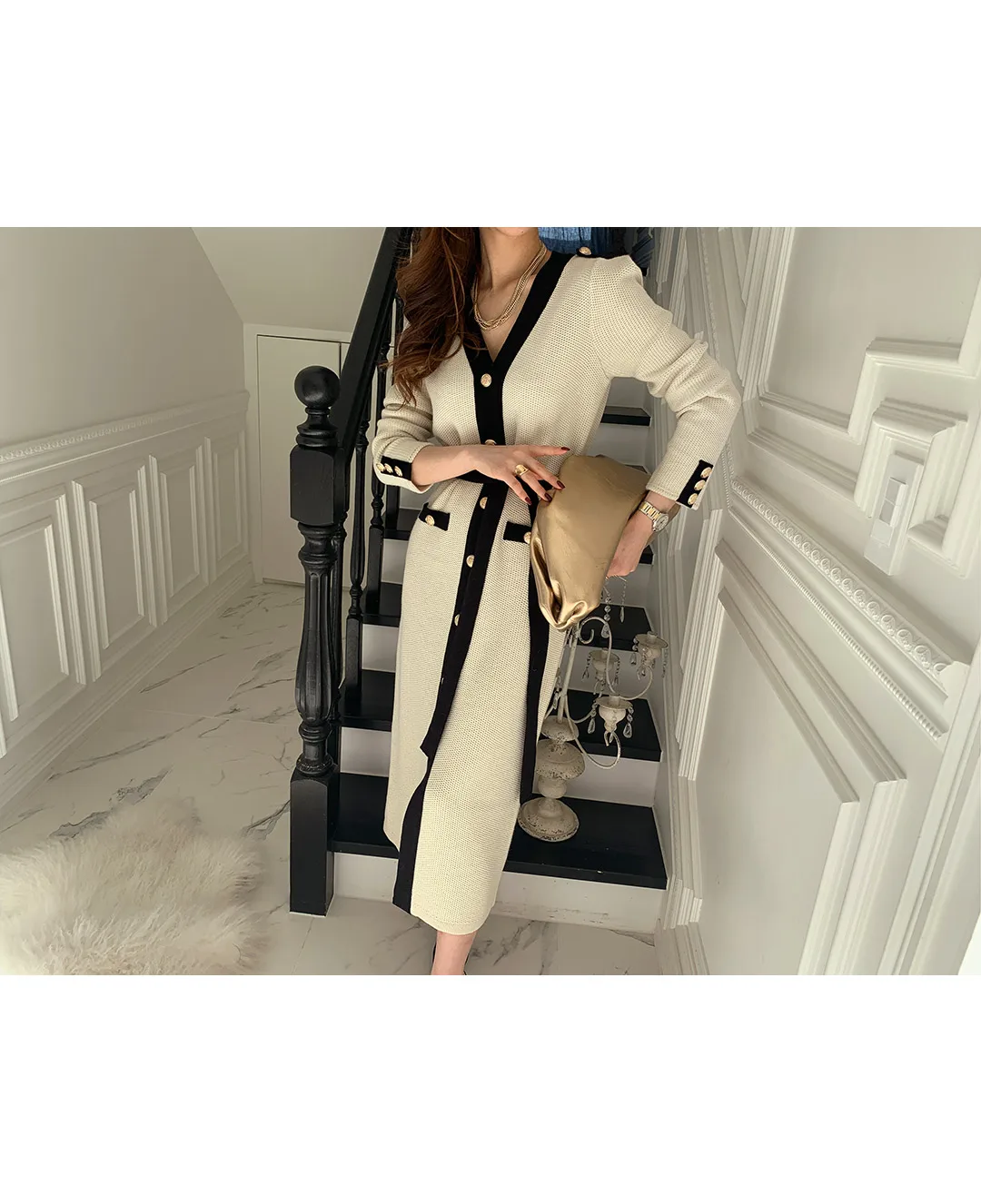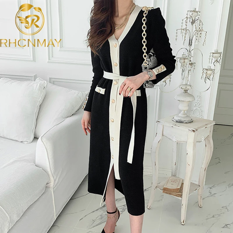 Шикарное длинное вязаное платье во французском стиле для женщин на ...