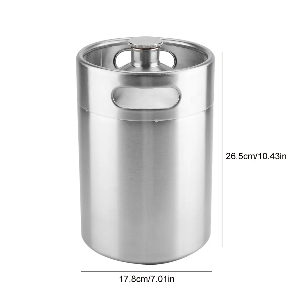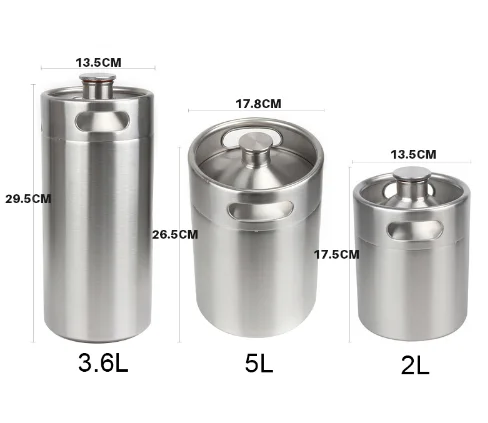 Материал: нержавеющая стальРазмер для справки: прибл.2L мини бочонок: 13,5*17,5 см3.6L мини бочонок: 13,5*29,5 см4L мини бочонок: 13,5*33,5 см5Lmini бочонок: 17,8*26,5 смРазмер резьбы крышки: 35*1,5Применение: пивная бочка, портативный чайник, изоляция ликера bottleNote:1. Допускается погрешность в 1-10 мм из-за ручного измерения.2. Цвет может отличаться от цвета на дисплее, пожалуйста, поймите.
