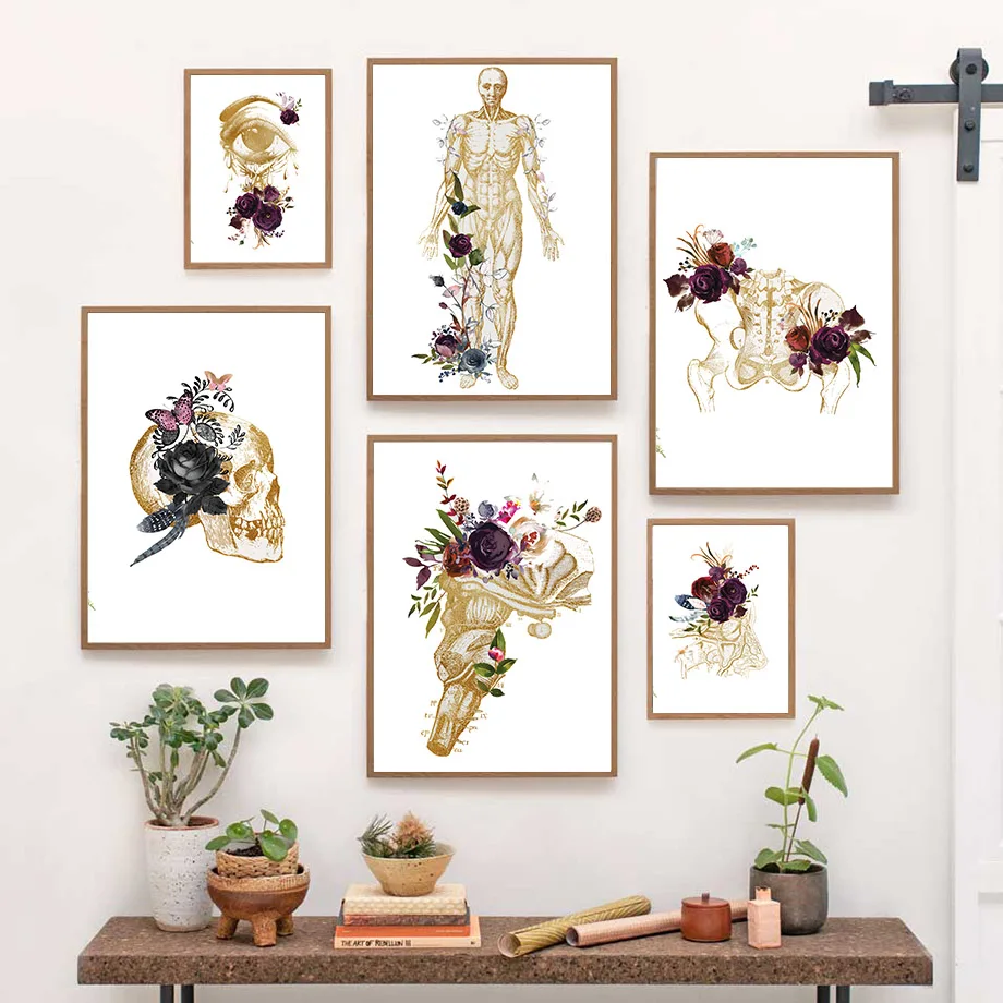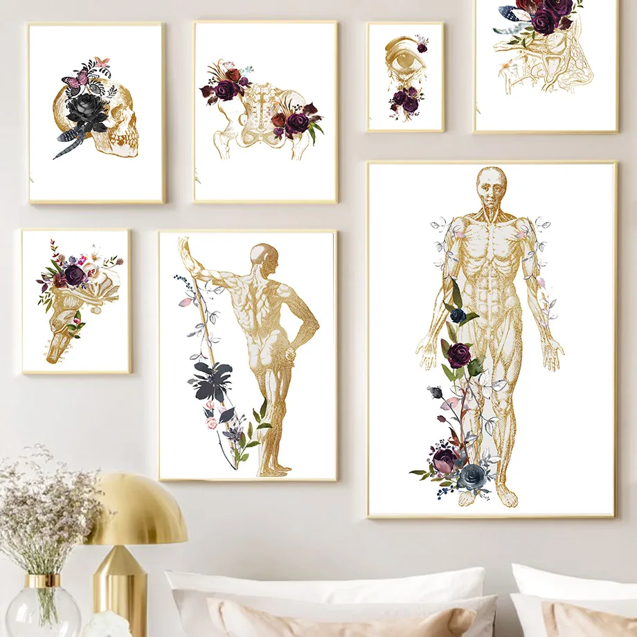Мышечная ткань череп бедра кость глаза цветок Анатомия стены Искусство Холст живопись плакаты и принты настенные картины для декора комнаты врача