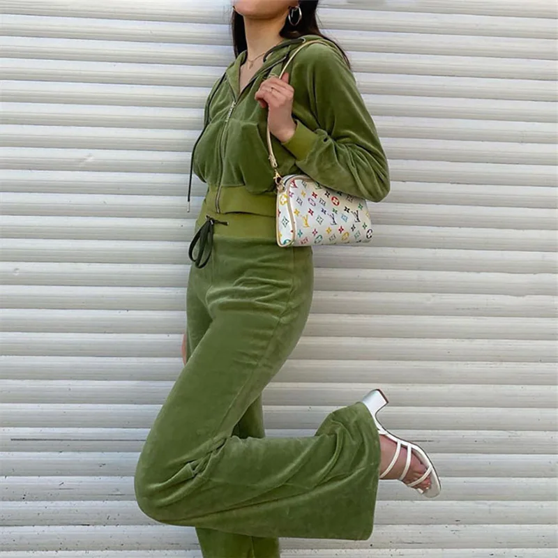 Бархатный спортивный костюм в европейском стиле, толстовки с длинным рукавом, укороченный топ и длинные брюки, комплект из 2 предметов