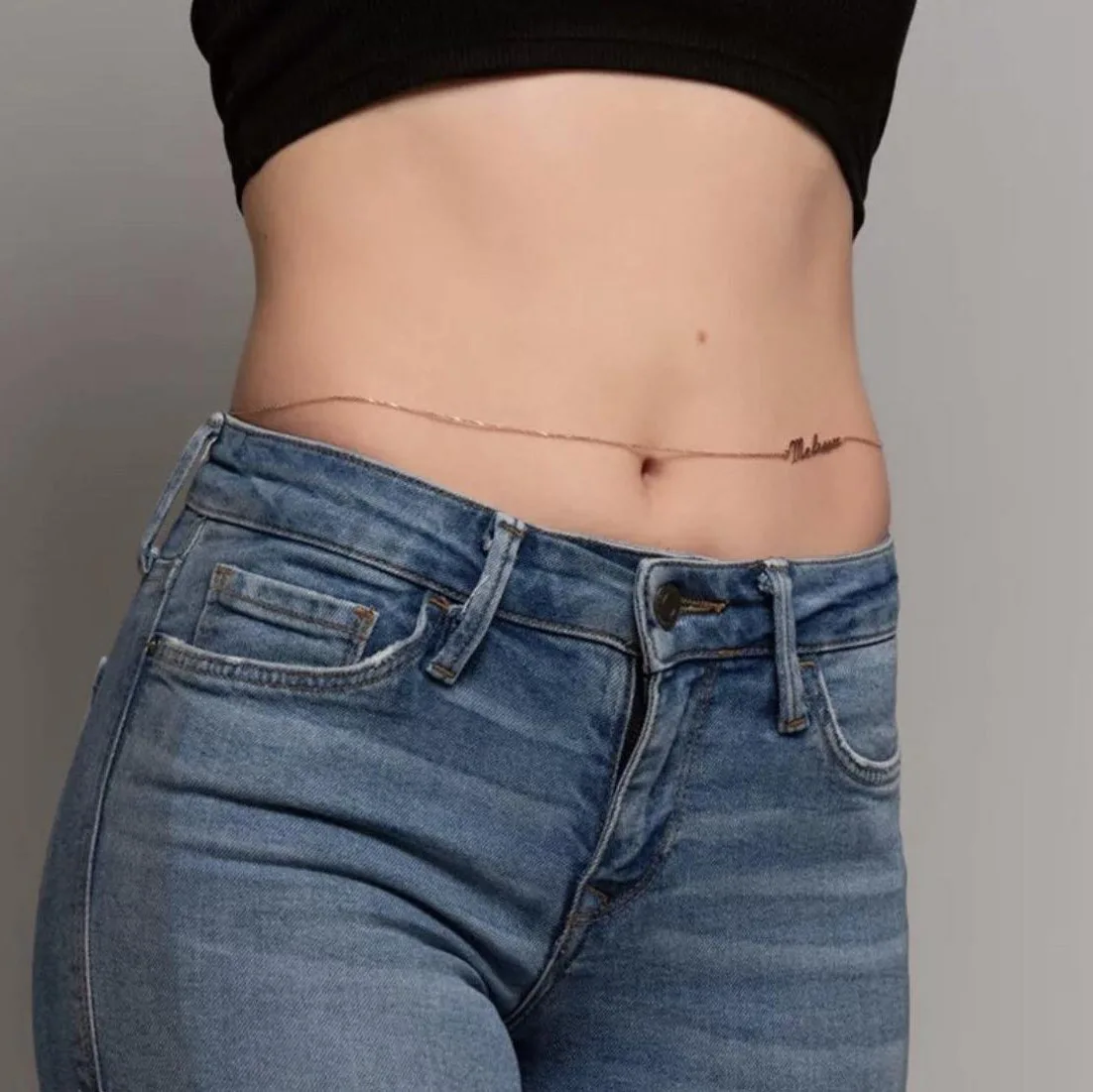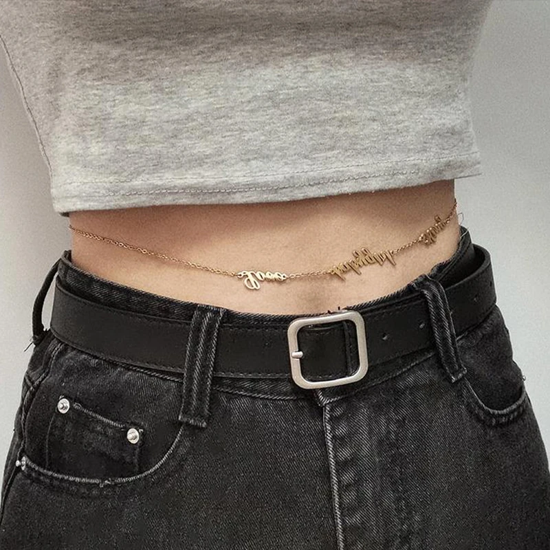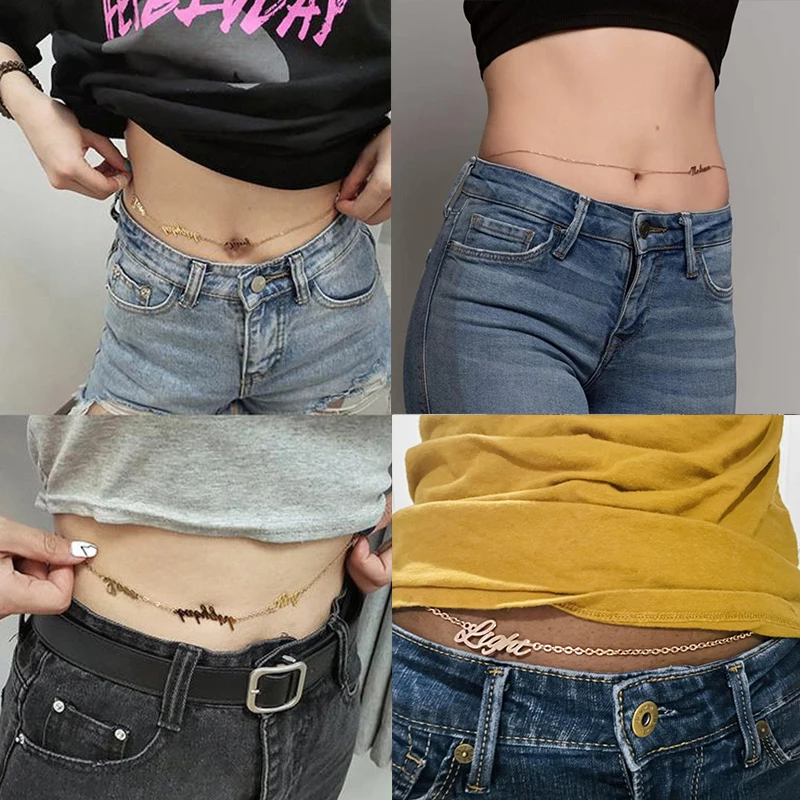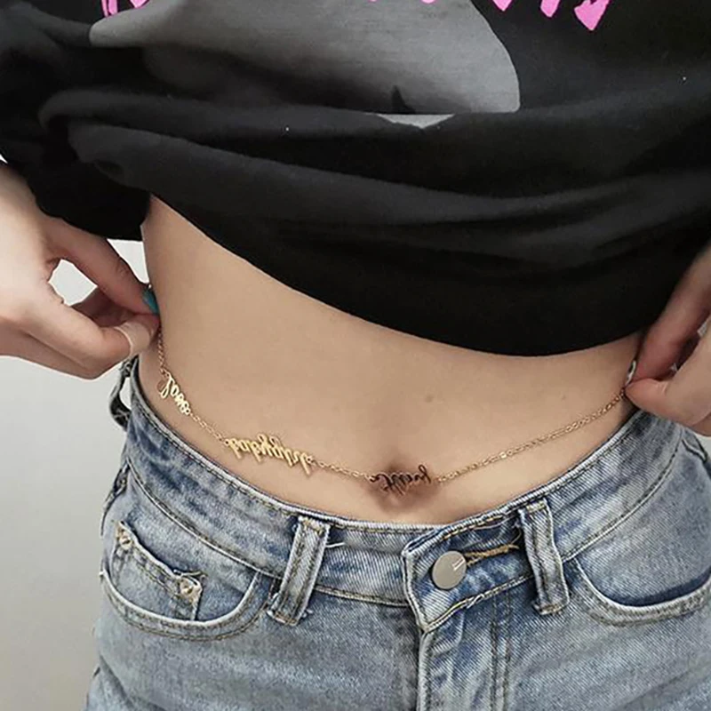 Индивидуальная цепочка на талию из нержавеющей стали для женщин, индивидуальная Золотая табличка, богемная цепочка на талию, Пляжная бижутерия для тела, подарок